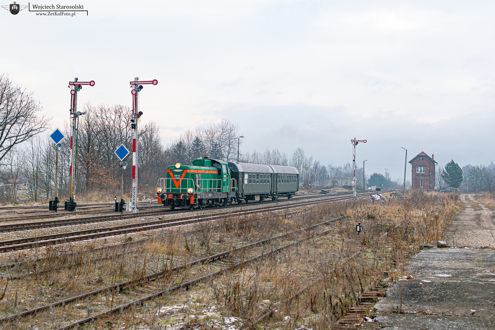 14.12.2024 | Prudnik | Stacja Prudnik | SM42-2182 z dwoma wagonami 94A wjeżdża do stacji Prudnik od strony Racławic Śl.