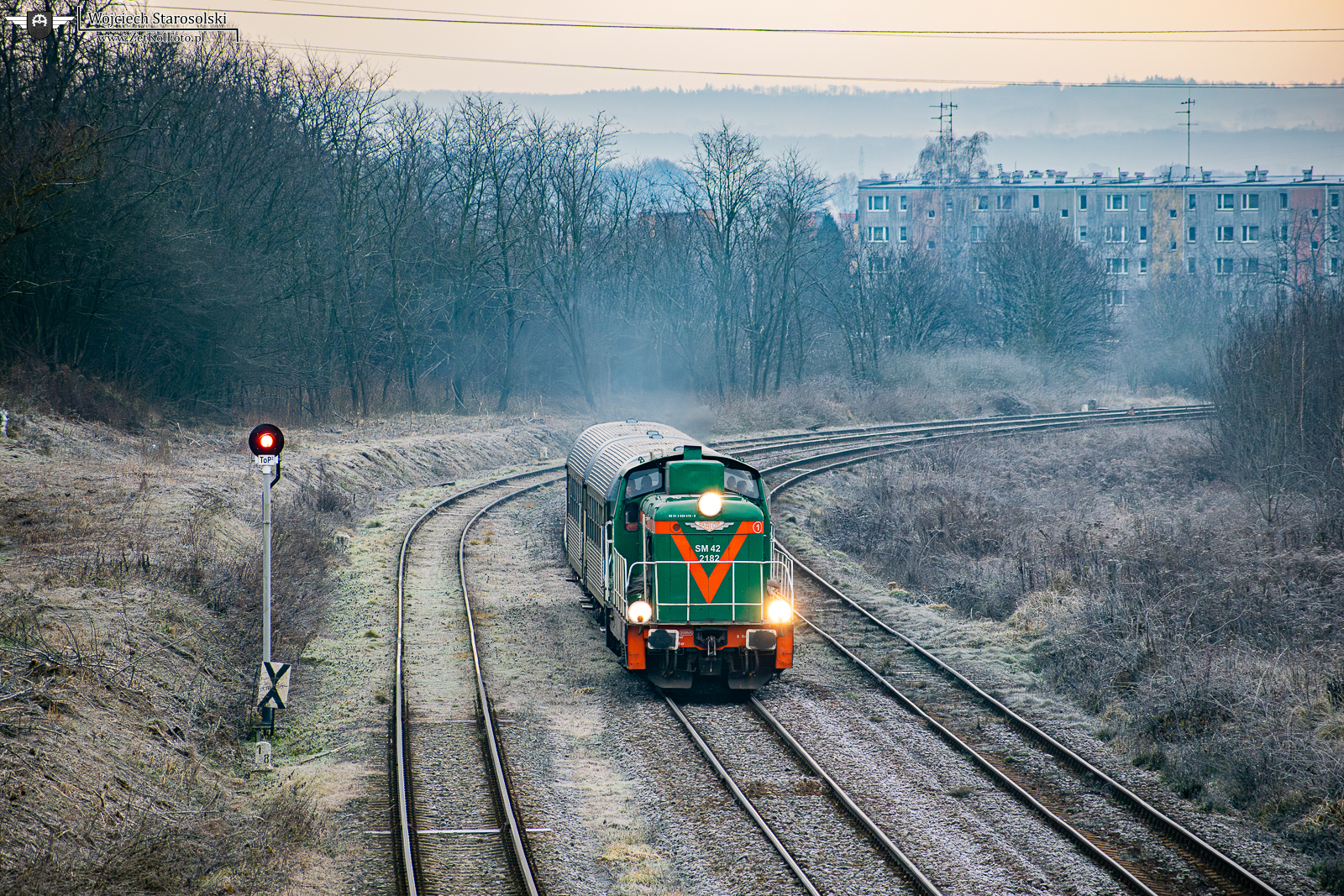 14.12.2024 | Nysa | Szlak Nysa-Goświnowice | SM42-2182 z dwoma 94A jedzie w kierunku Goświnowic.
