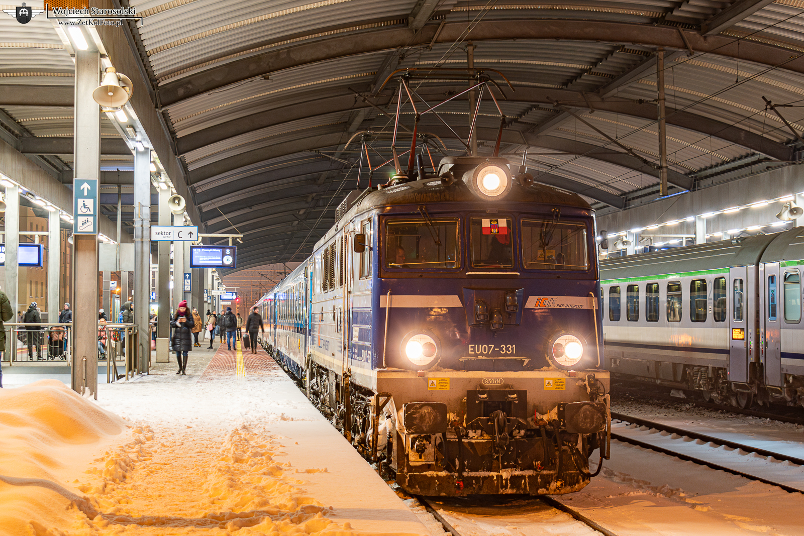 16.12.2022 | Katowice | Stacja Katowice | EU07-331 z pociągiem spółki PKP Intercity oczekuje odjazdu ze stacji Katowice. Tamtego dnia między Trzebinią a Jaworznem Szczakową pociąg TLK Galicja potrącił człowieka, co spowodowało korek od Mysłowic aż po Strzelce Opolskie.