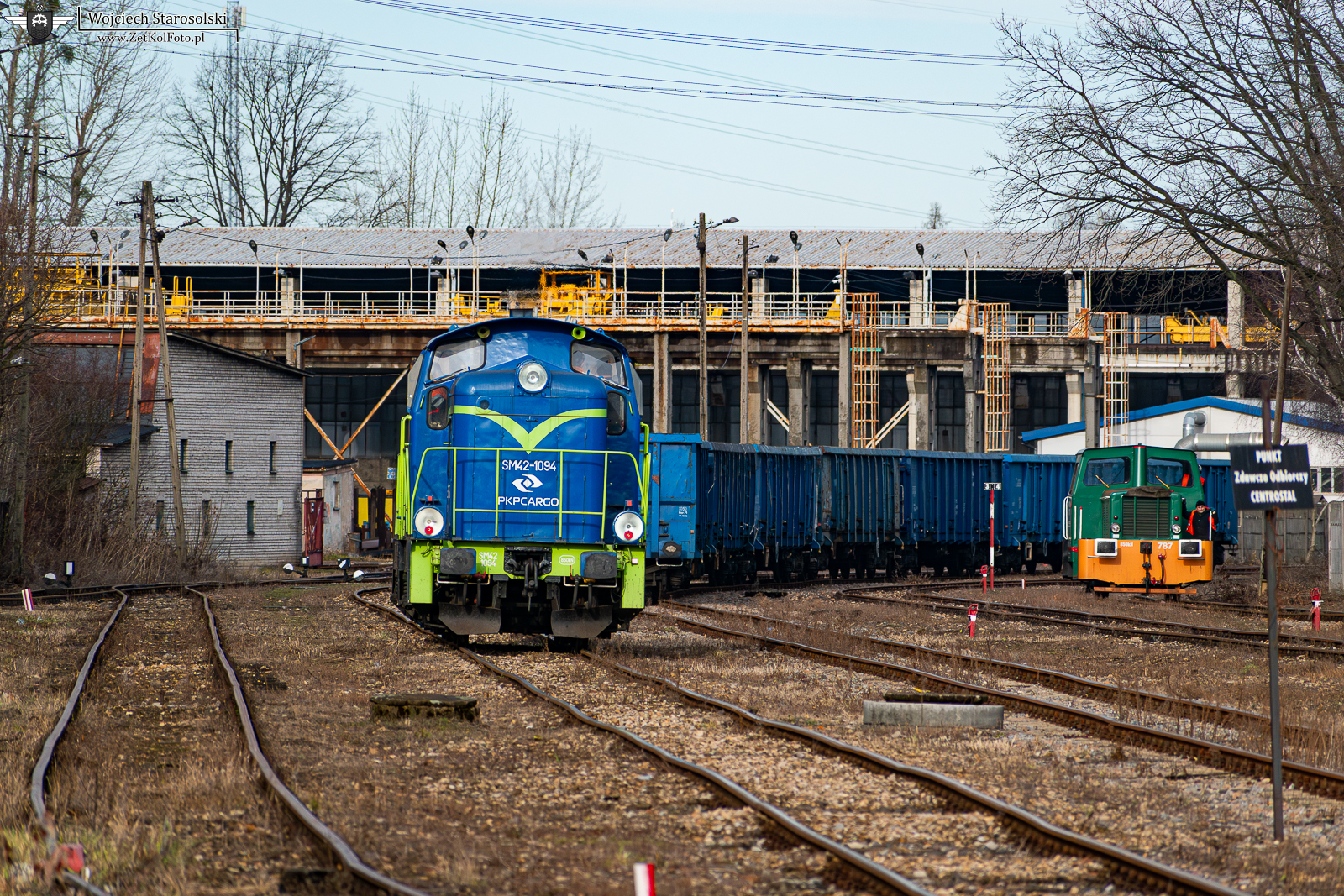09.01.2025 | Bielsko-Biała | Grupa z/o zakładu ArcelorMittal recykling (SILSCRAP) (Bielsko-Biała Komorowice) | SM42-1094 luzem oczekuje dalszych zadań po wjechaniu na grupę zdawczo-odbiorczą obsługującą zakład ArcelorMittal recykling. (tj.SILSCRAP) Grupa ta odchodzi od posterunku bocznicowego Bielsko-Biała Komorowice. Po prawej stronie widoczna zakładowa 409Da-787 która niegdyś należała do Gliwickiej Fabryki Drutów S.A.