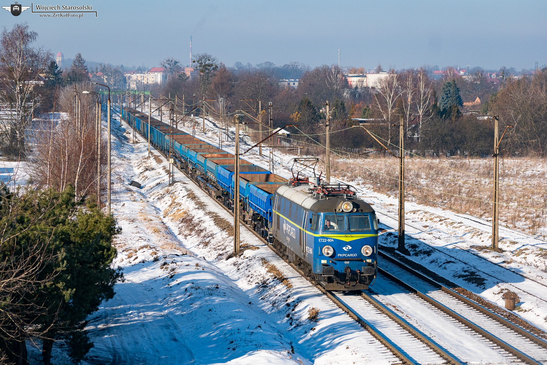 18.01.2025 | Tarnowskie Góry | Szlak Nakło Śl.-Tarnowskie Góry | ET22-804 z radwanami i węglarkami jedzie na Nakło.