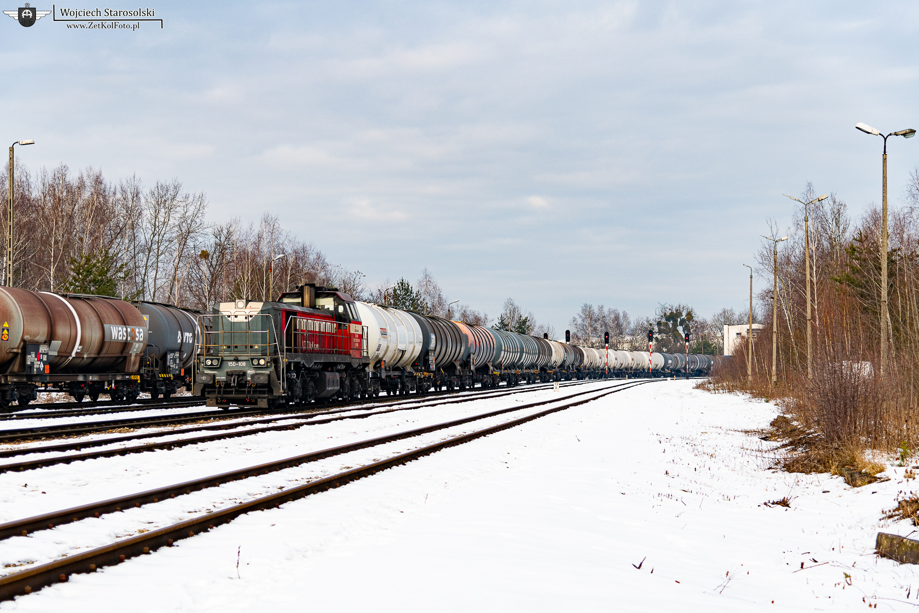 24.01.2025 | Piekary Śląskie | Stacja Piekary Śląskie Szarlej | 15D-108 ze składem beczek manewruje w w/w stacji.