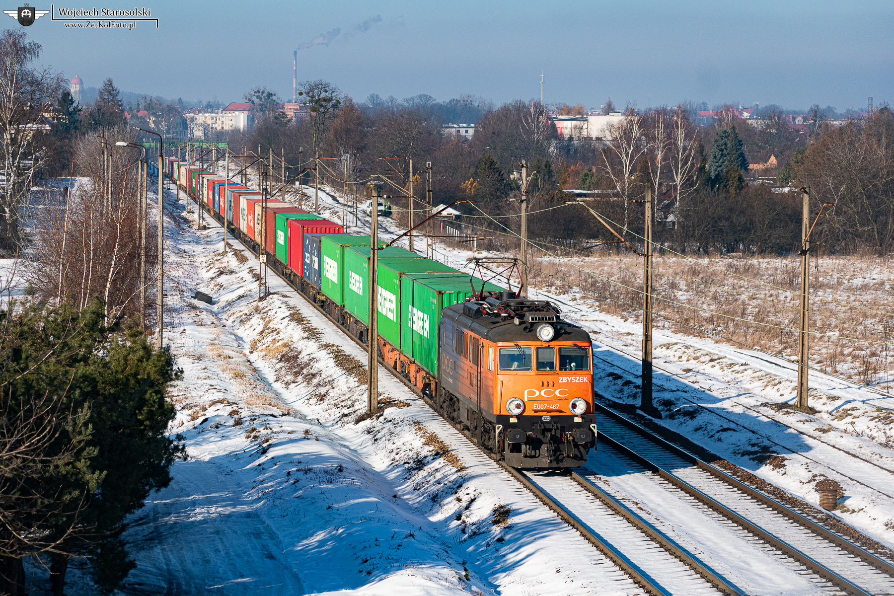 18.01.2025 | Tarnowskie Góry | Szlak Nakło Śl.-Tarnowskie Góry | EU07-467 z intermodalem jedzie na Nakło.