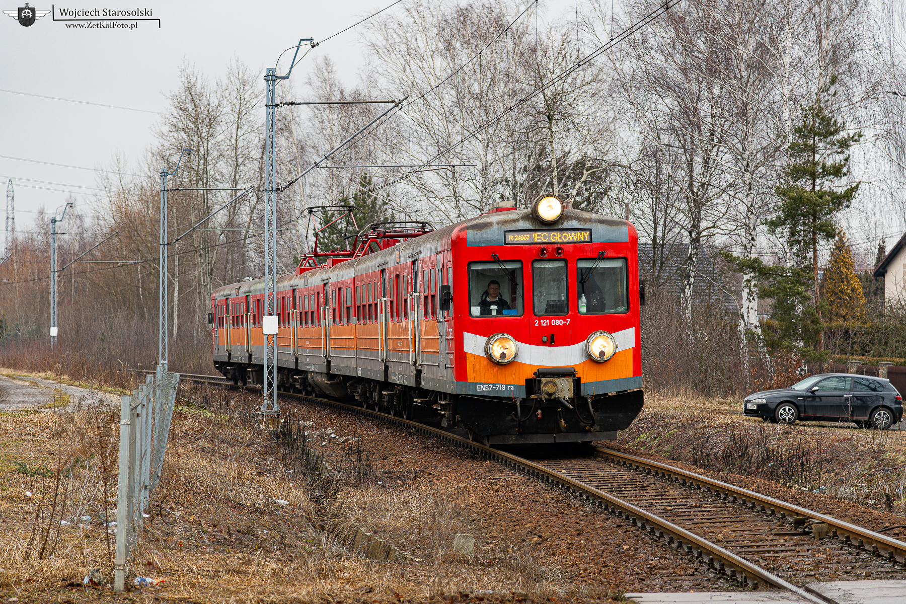 06.02.2025 | Sosnowiec | Szlak Sosnowiec Kazimierz-Sosnowiec Dańdówka | EN57-719 jako osobówka rel.Sędziszów-Sosnowiec Gł. jedzie w kierunku Dańdówy, zbliżając się do p.o. Sosnowiec Porąbka.