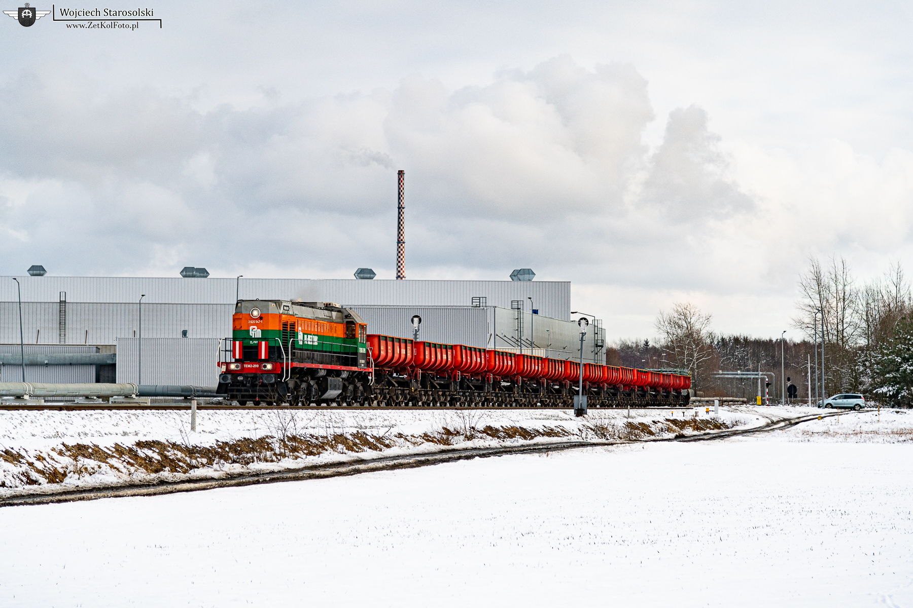 15.02.2025 | Polkowice | Szlak Polkowice Zachodnie-Polkowice Główne | TEM2-299 z kolebami jedzie w kierunku Polek Zachodnich.