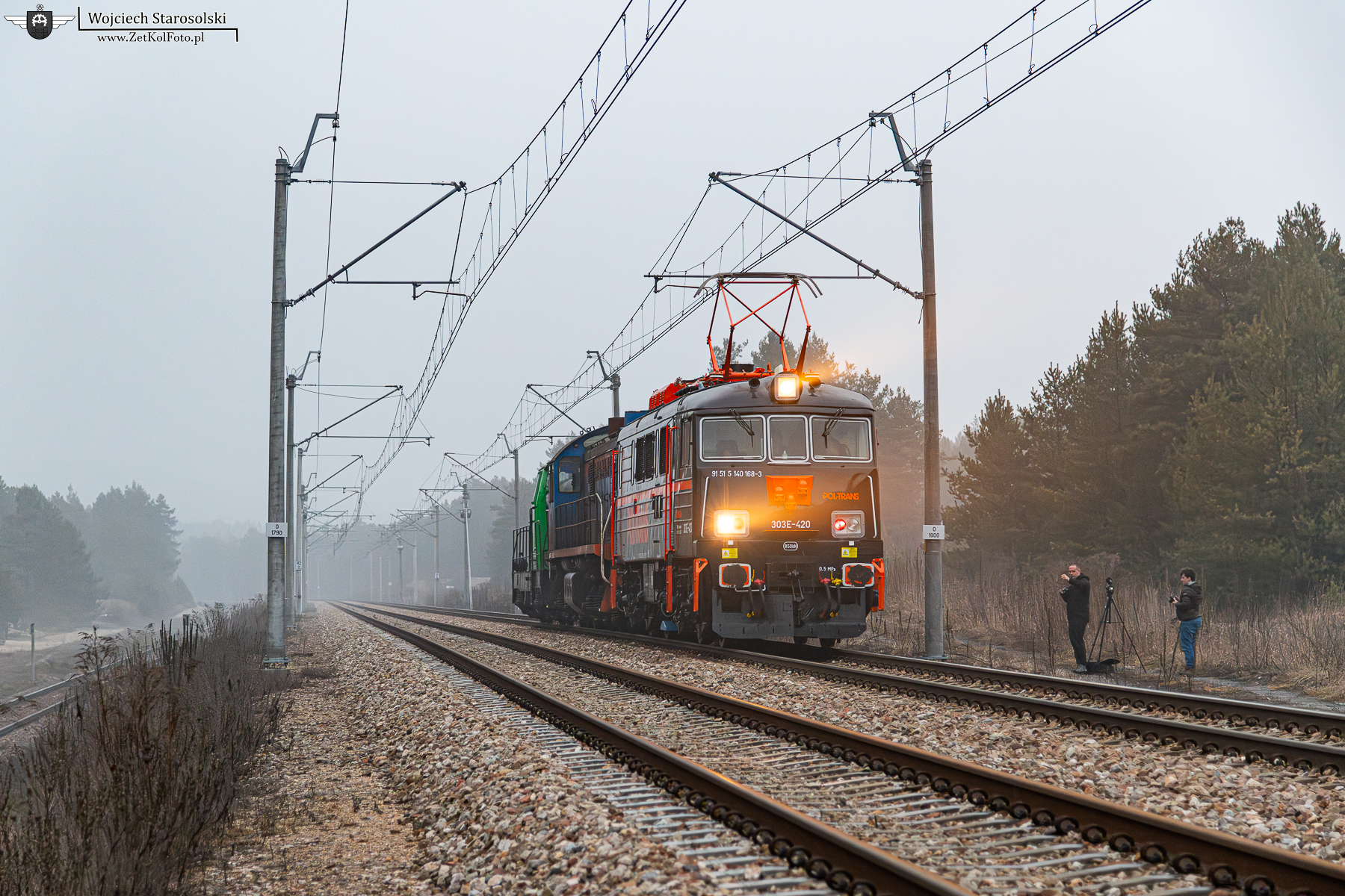 24.02.2025 | Jaroszowiec Olkuski | Szlak Olkusz Jaroszowiec Olkuski | 303E-420 (EU07-520) wraz z TEM2-133 i SM42-1118 jadą w/w szlakiem na Olkusz.