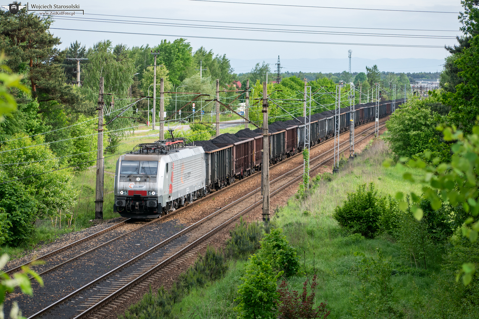 08.05.2024 | Mysłowice | Szlak Mysłowice Kosztowy-Imielin | 189 452 z węglarzem zbliża się do Kosztów.