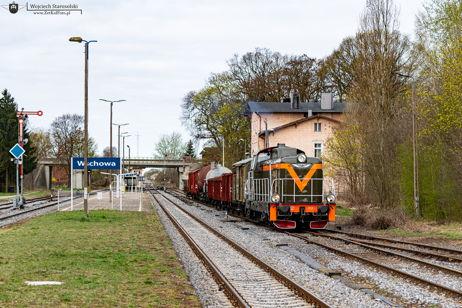 06.04.2025 | Wschowa | Stacja Wschowa | SP42-001 ze specjalnym składem towarowym oczekuje wyjazdu z w/w stacji.