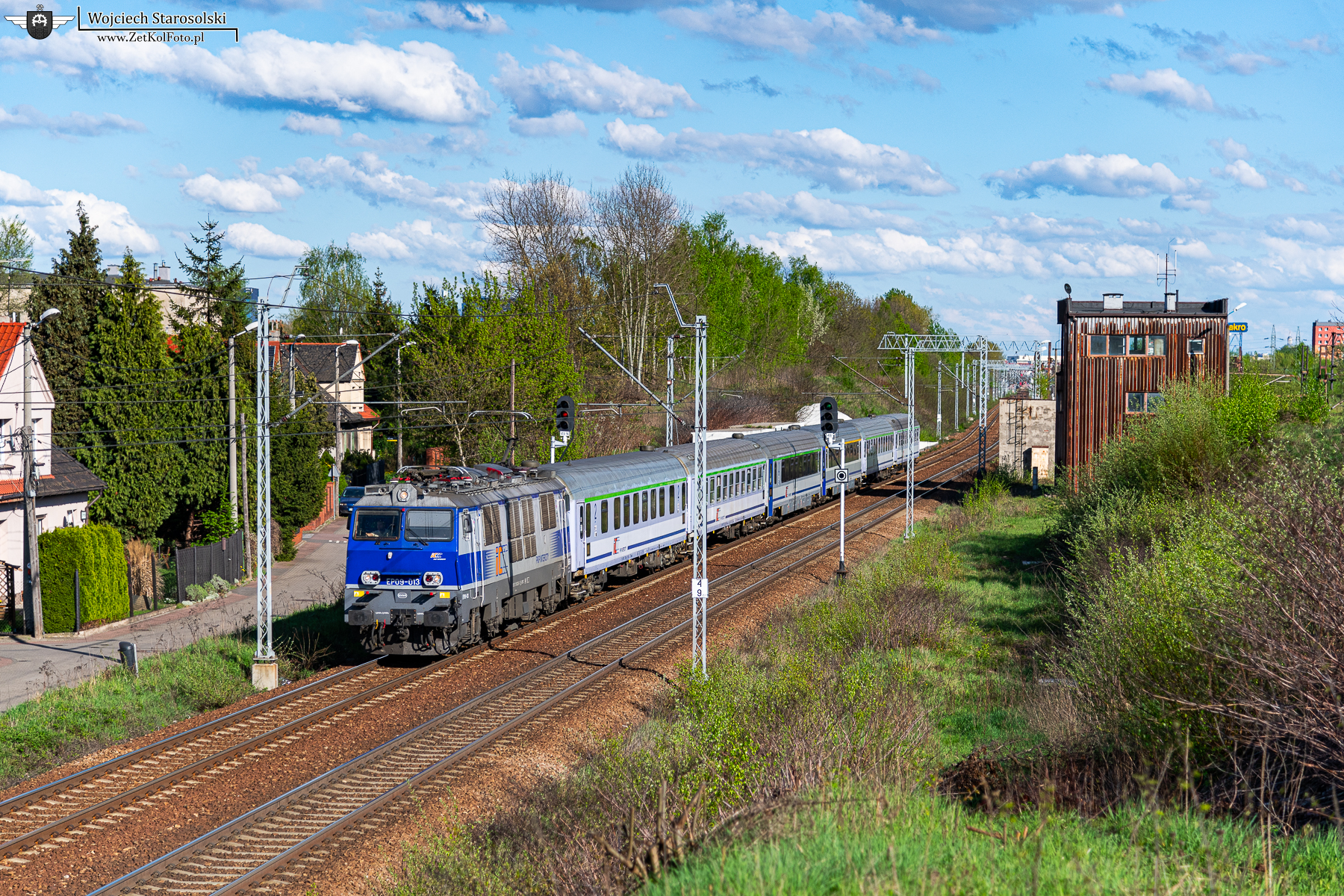 19.04.2025 | Chorzów | Szlak Katowice Towarowa KTC-Chorzów Batory | EP09-013 z pociągiem spółki PKP Intercity jedzie w/w szlakiem w kierunku Batorego.