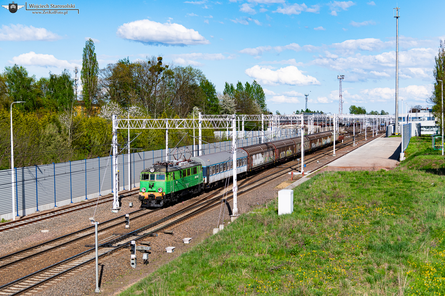 19.04.2025 | Czechowice-Dziedzice | Stacja Czechowice-Dziedzice | EU07-308 z ciekawym mieszańcem opuszcza w/w stację w kierunku Zebrzydowic.