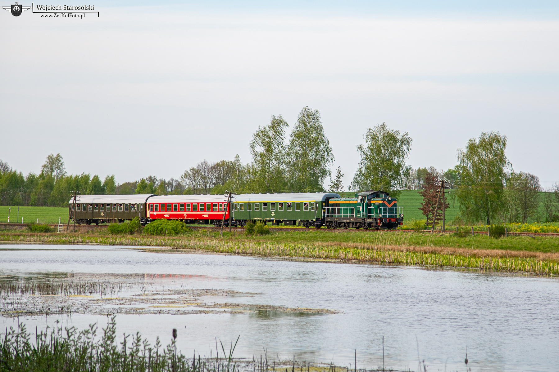 02.05.2025 | Łebień | Szlak Lębork-Wrzeście | SU42-536 z trzema wagonami jedzie w/w szlakiem na Lębork.