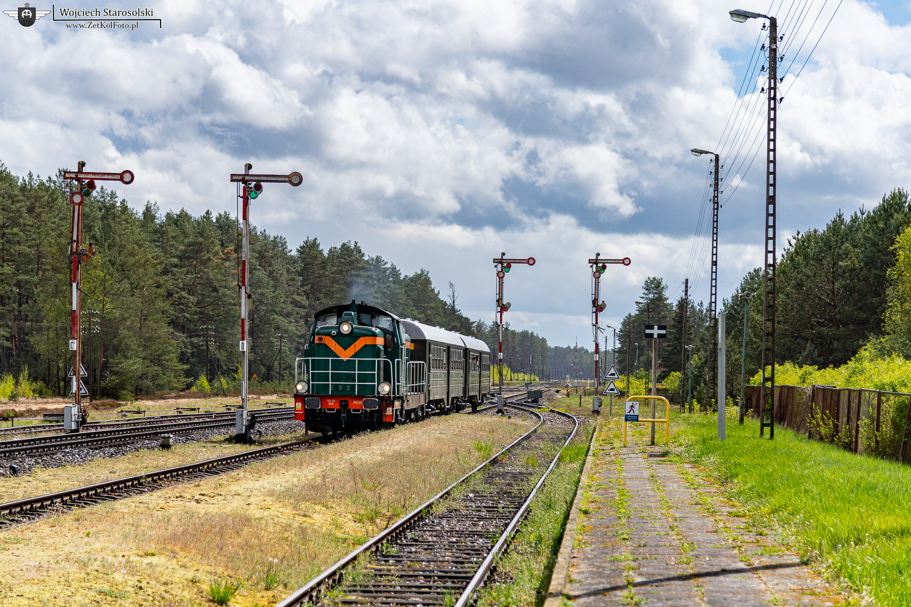 04.05.2025 | Stara Kiszewa | Stacja Bąk | SU42-536 z TurKolem wjeżdża do Bąka od strony Czerska.