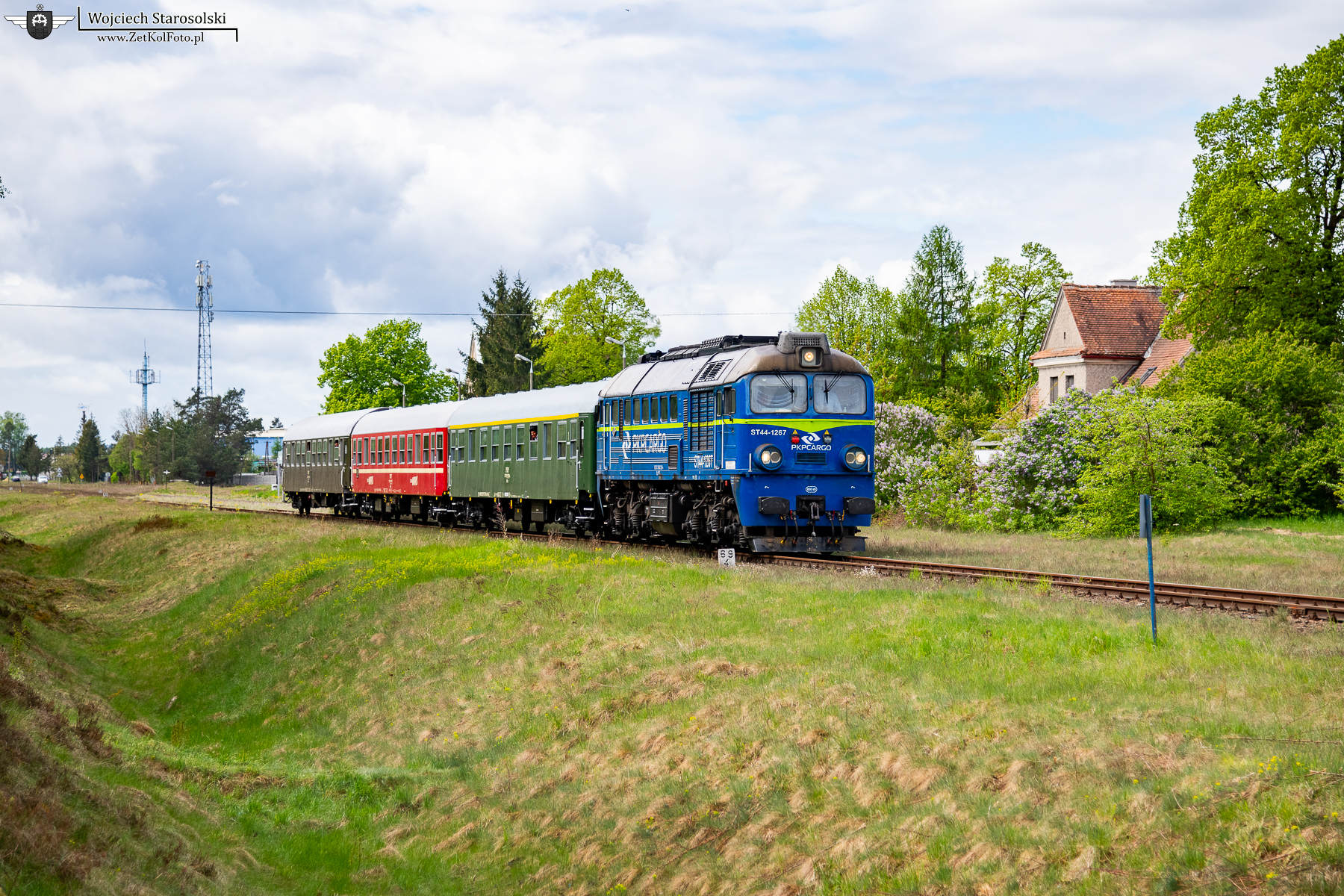 04.05.2025 | Karsin | Szlak Czersk-Bąk | ST44-1267 z TurKolem jedzie w/w szlakiem w kierunku Bąka.