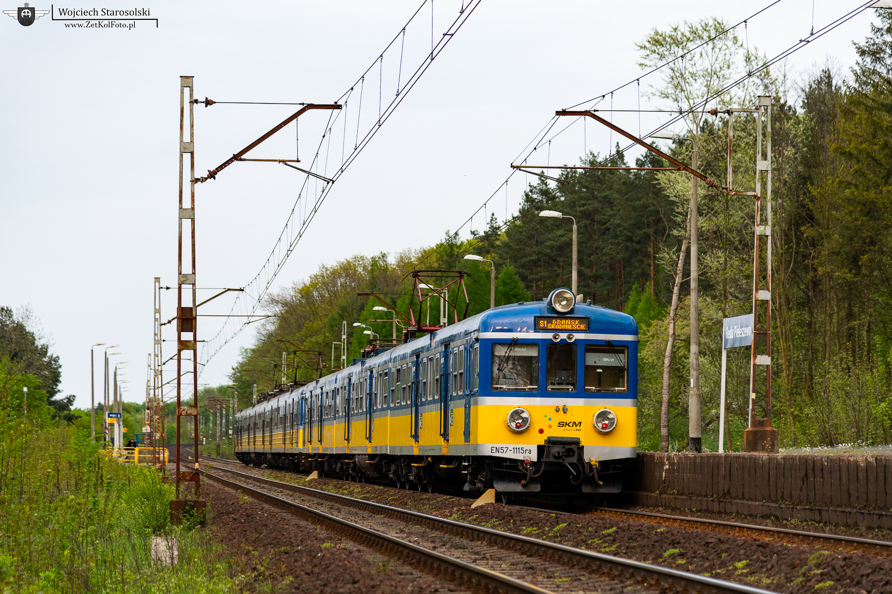 01.05.2025 | Reda | Szlak Reda-Wejherowo | EN57-1115 jako druga jednostka pociągu SKMT do Gdańska, stoi w peronach p.o Reda Pieleszewo.