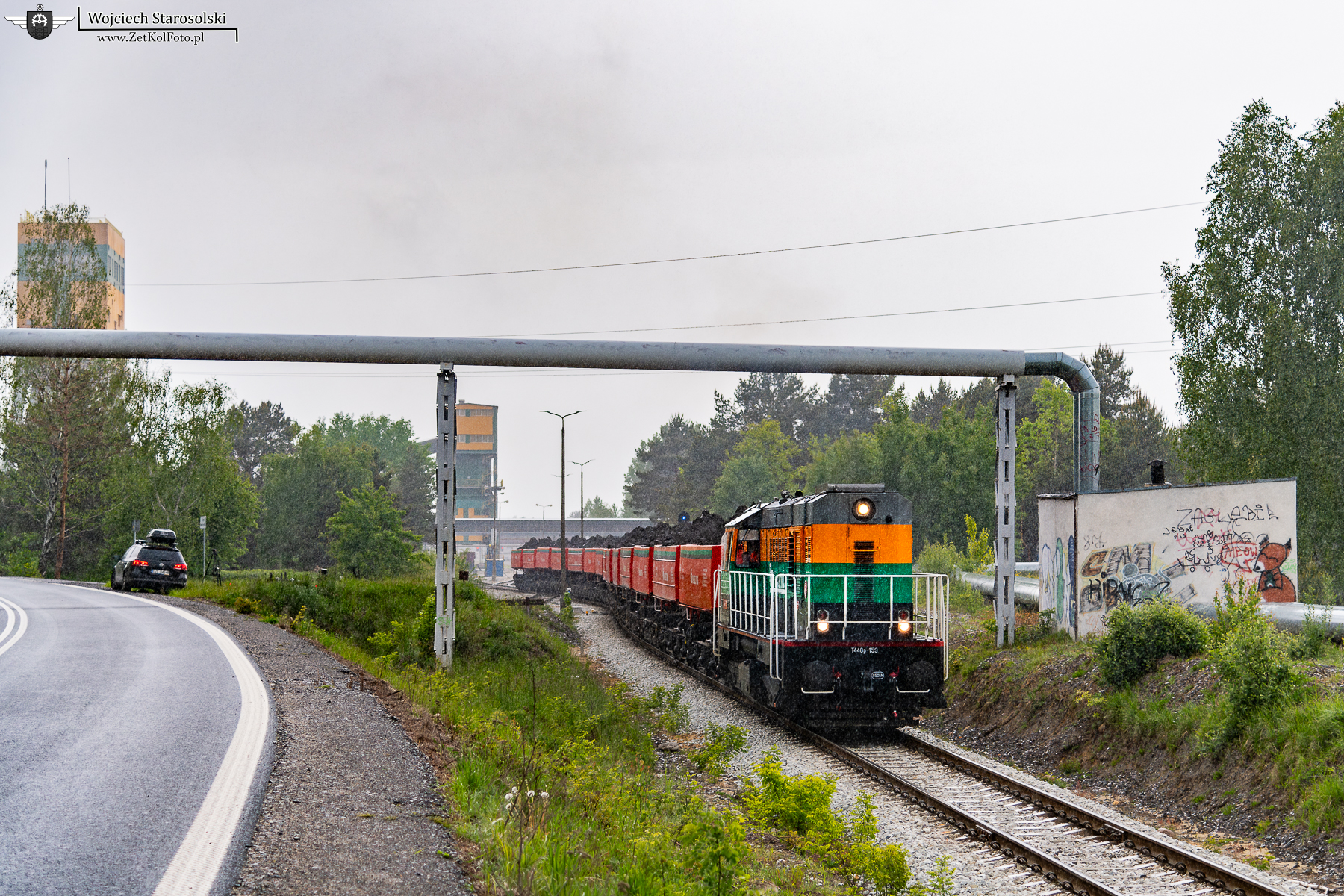 10.05.2025 | Rudna | Stacja Rudna Zachodnia | T448P-159 z ładownymi kolebami opuszcza w/w stację w kierunku Rudny Zdawczej.