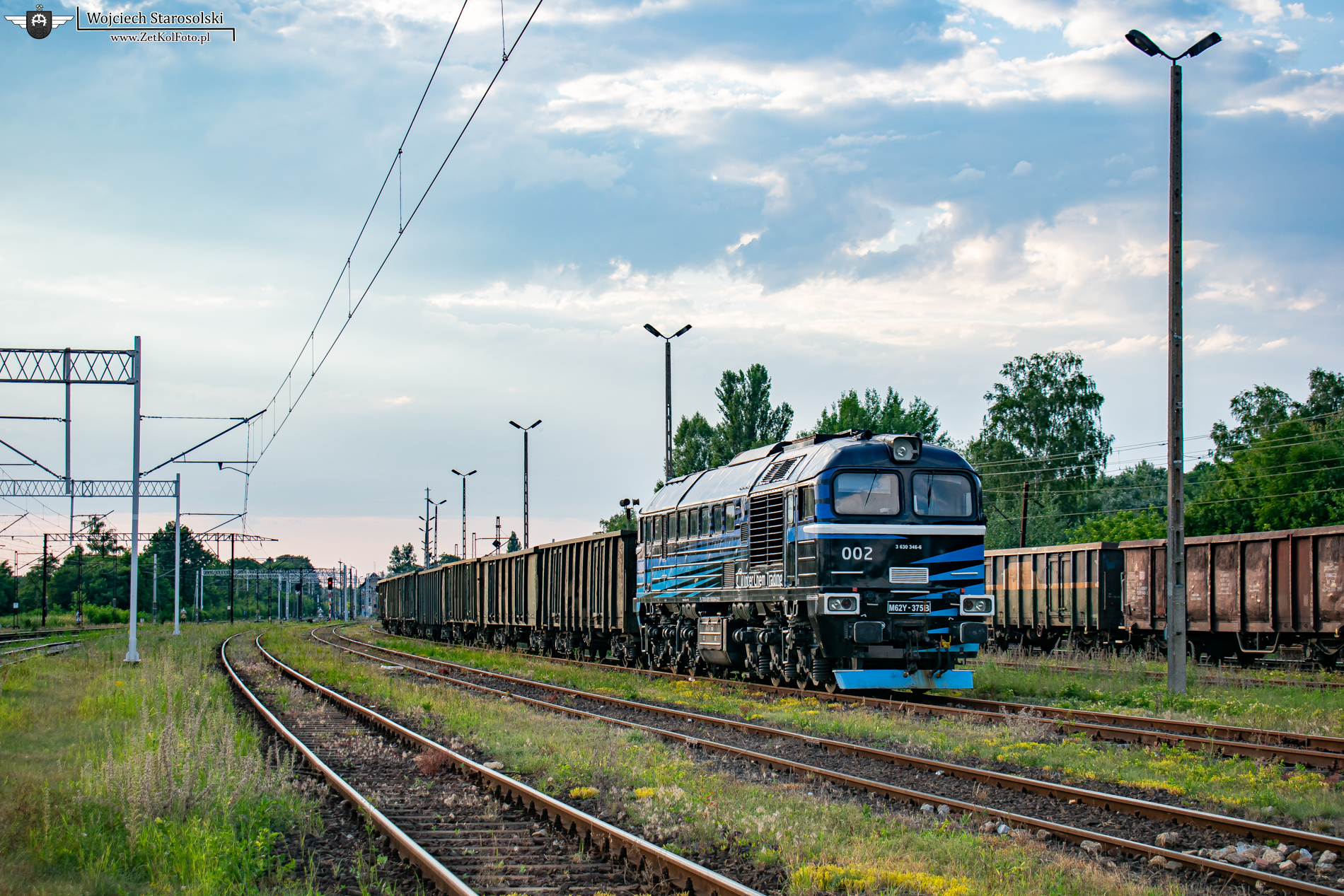 16.07.2023 | Gliwice | Stacja Gliwice Łabędy | M62Y-375B z węglarkami stoi na stacji Gliwice Łabędy.