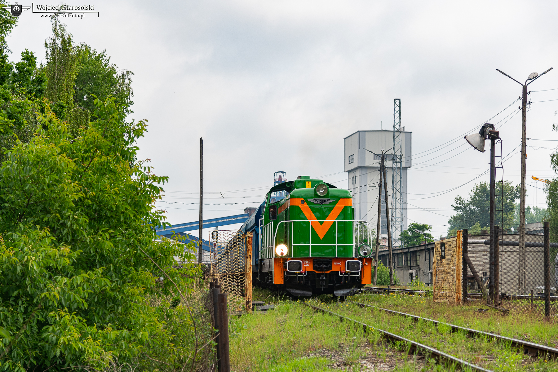 16.06.2025 | Łaziska | Bocznica KWK Bolesław Śmiały | SM42-746 wyciąga ładowny skład talbotów do stacji Łaziska Średnie.