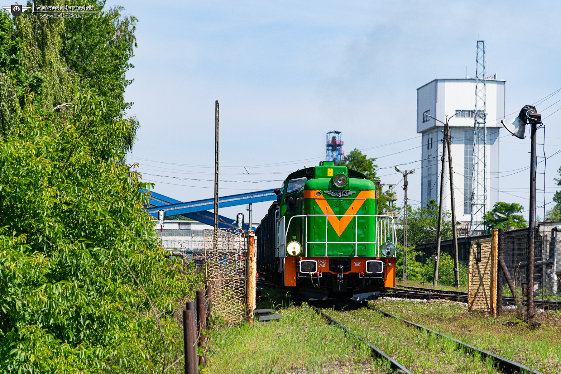 18.06.2025 | Łaziska | Bocznica KWK Bolesław Śmiały | SM42-746 wyciąga ładowny skład węglarek do stacji Łaziska Średnie.