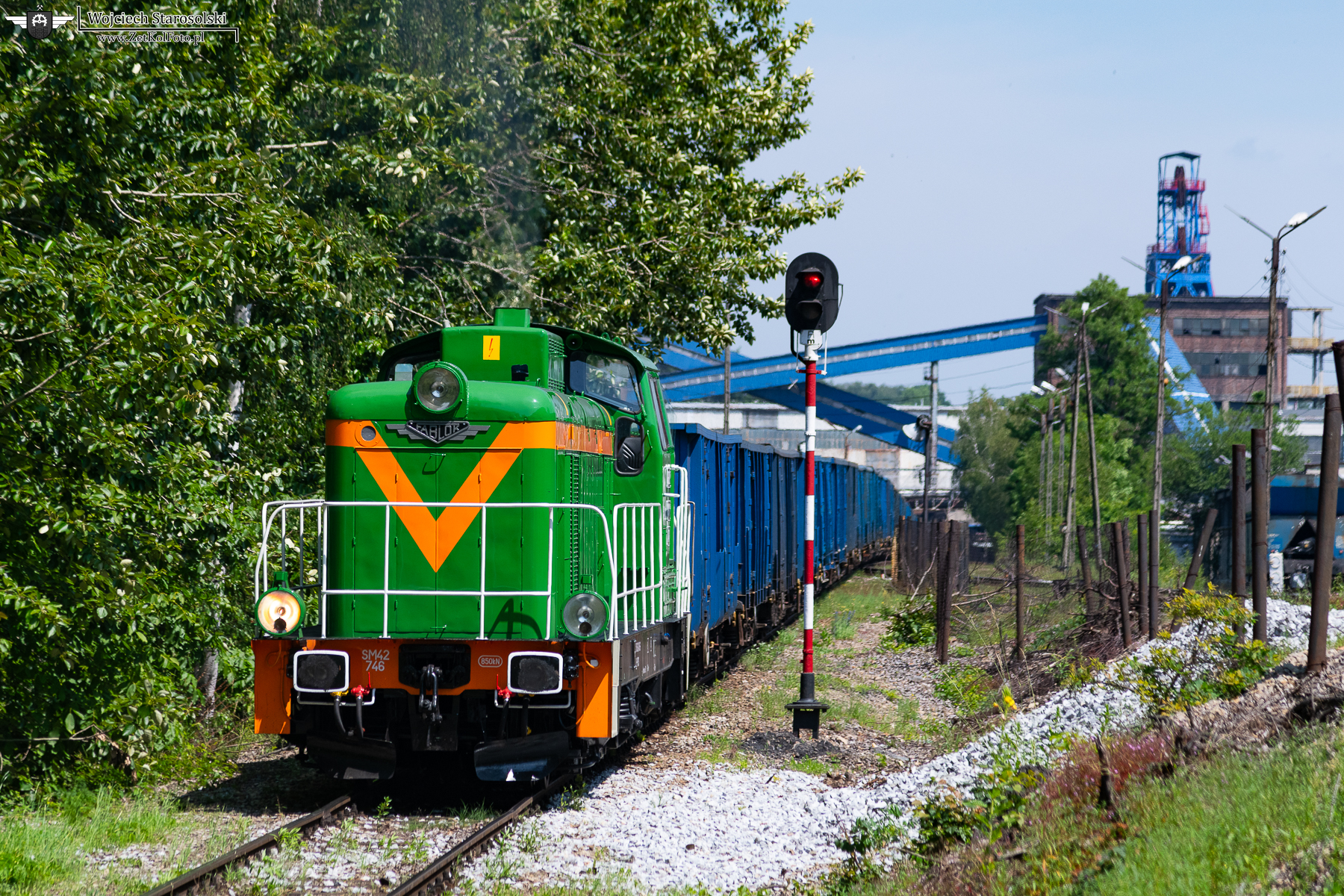 18.06.2025 | Łaziska | Bocznica KWK Bolesław Śmiały | SM42-746 manewruje ze składem węglarek na KWK Bolesław Śmiały.