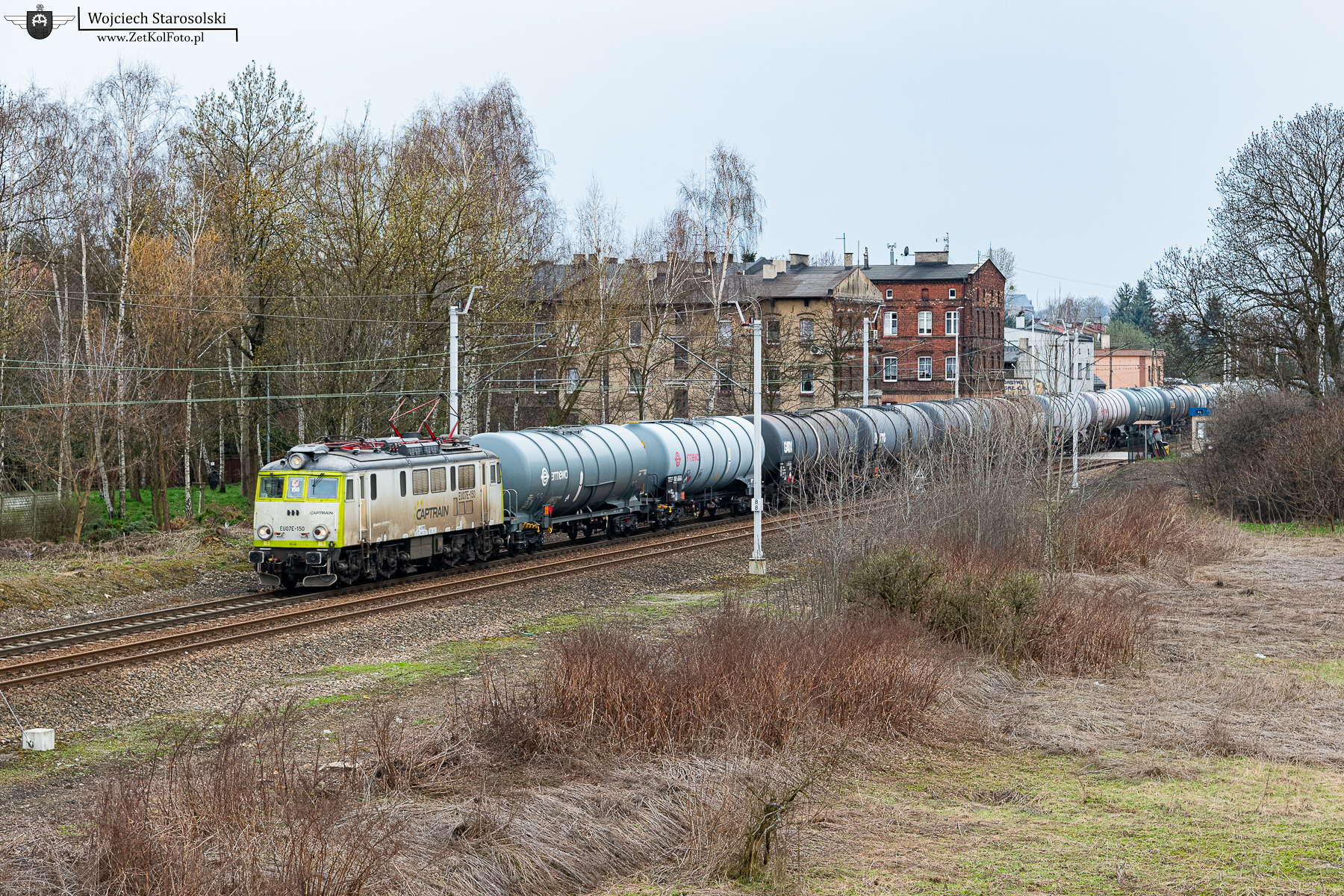 29.03.2025 | Siemianowice Śląskie | Szlak Siemianowice Śląskie-Chorzów Stary | EU07E-150 z beczkami jedzie w/w szlakiem na Siemianowice.