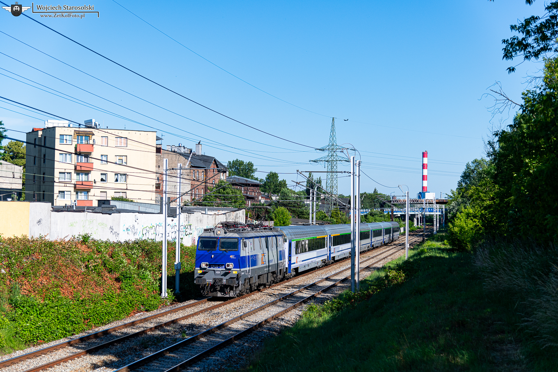 30.06.2025 | Siemianowice Śląskie | Szlak Siemianowice Śl.-Chorzów Stary | EP09-013 z pociągiem spółki PKP Intercity jedzie w kierunku Chorzowa.