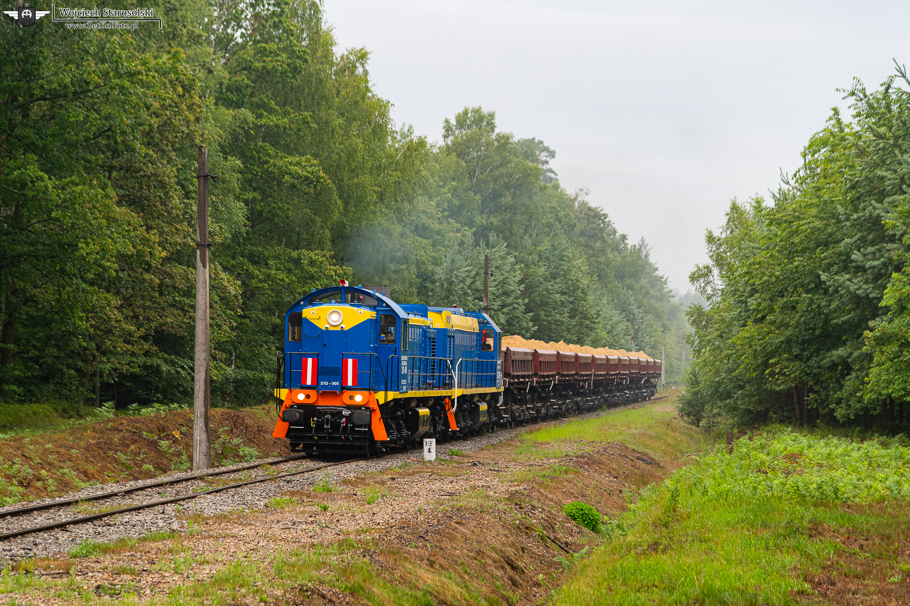 18.07.2025 | Rudy Raciborskie | Szlak Elektrownia Rybnik-Kotlarnia | 21D-008 (ex.TEM2-093) wraz z 21D-006 (ex.TEM2-277) prowadzą 12 ładownych radwanów z piaskiem szlakiem Elektrownia Zachód-Kotlarnia, jadąc w kierunku elektrowni Rybnik. Skład mija przysiółek Brantołka wsi Rudy. Piasek jechał sypać się na szlaku Katowice Kostuchna-podg.Staszic, a dokładniej w okolicy p.o. Katowice Murcki.