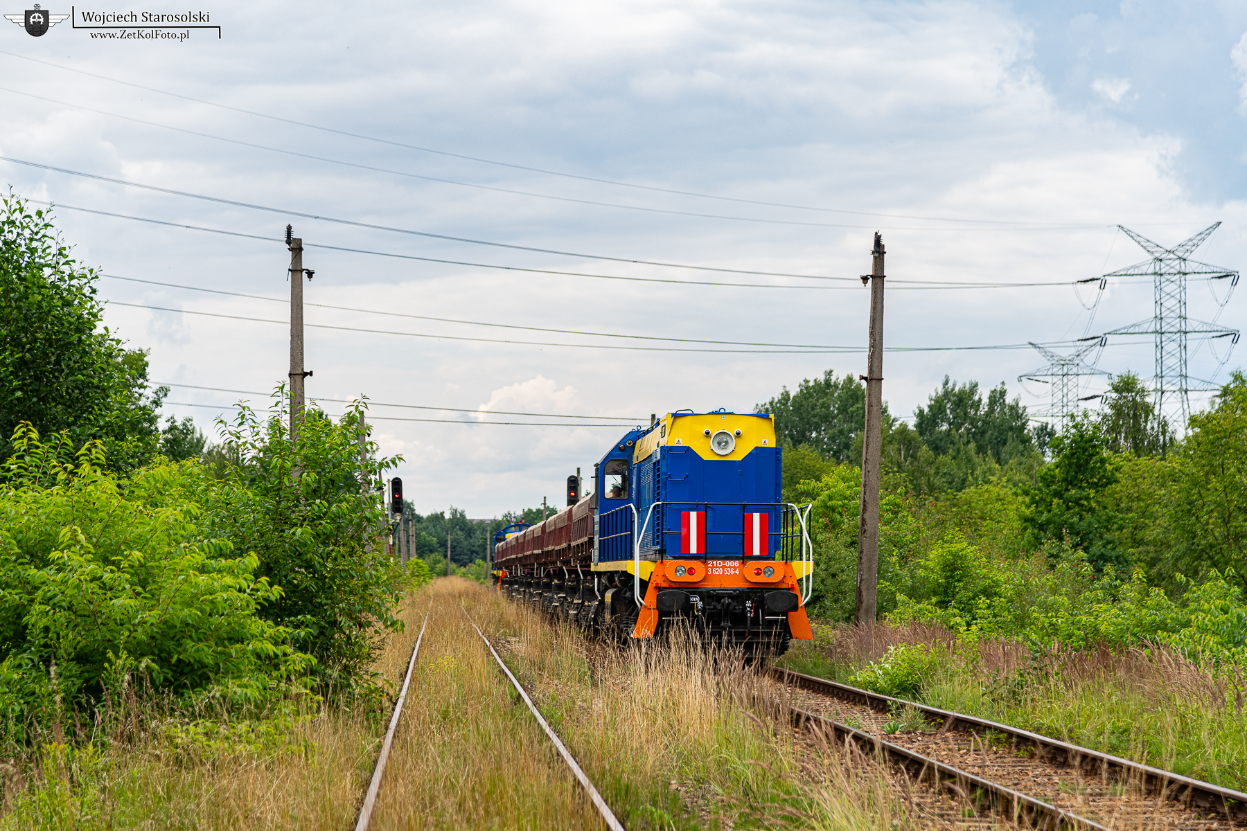 18.07.2025 | Rybnik | Szlak Leszczyny-Elektrownia Rybnik | 21D-006 na popychu próżnych radwanów zbliża się do el.Rybnik od Leszczyn.