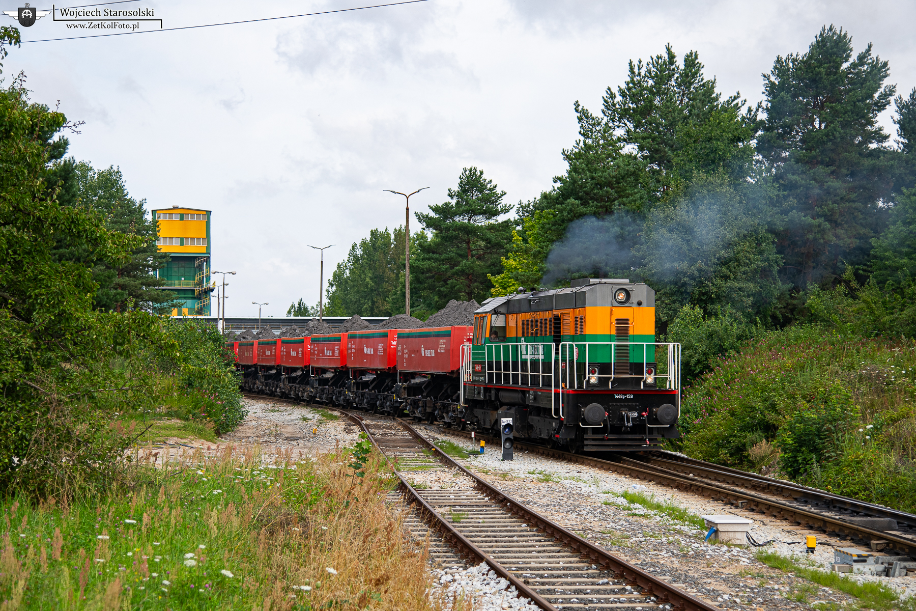 28.07.2025 | Rudna | Stacja Rudna Zachodnia | T448P-159 z ładownymi kolebami opuszcza w/w stację w kierunku Rudny Zdawczej.