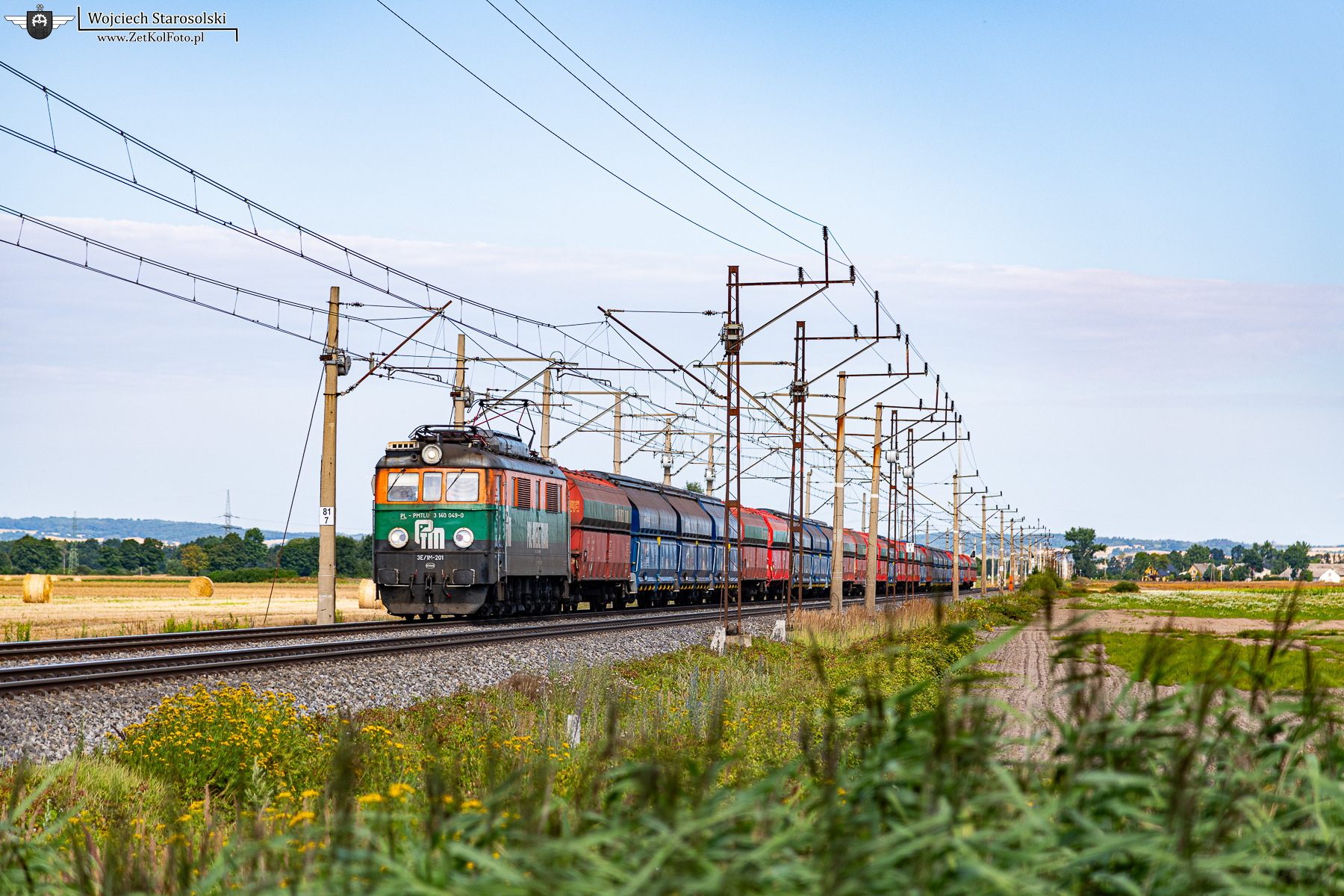 30.07.2025 | Krzydłowice | Szlak Rudna Gwizdanów-Grębocice | 3E/1M-201 z kominkami jedzie w/w szlakiem na Gwizdanów.