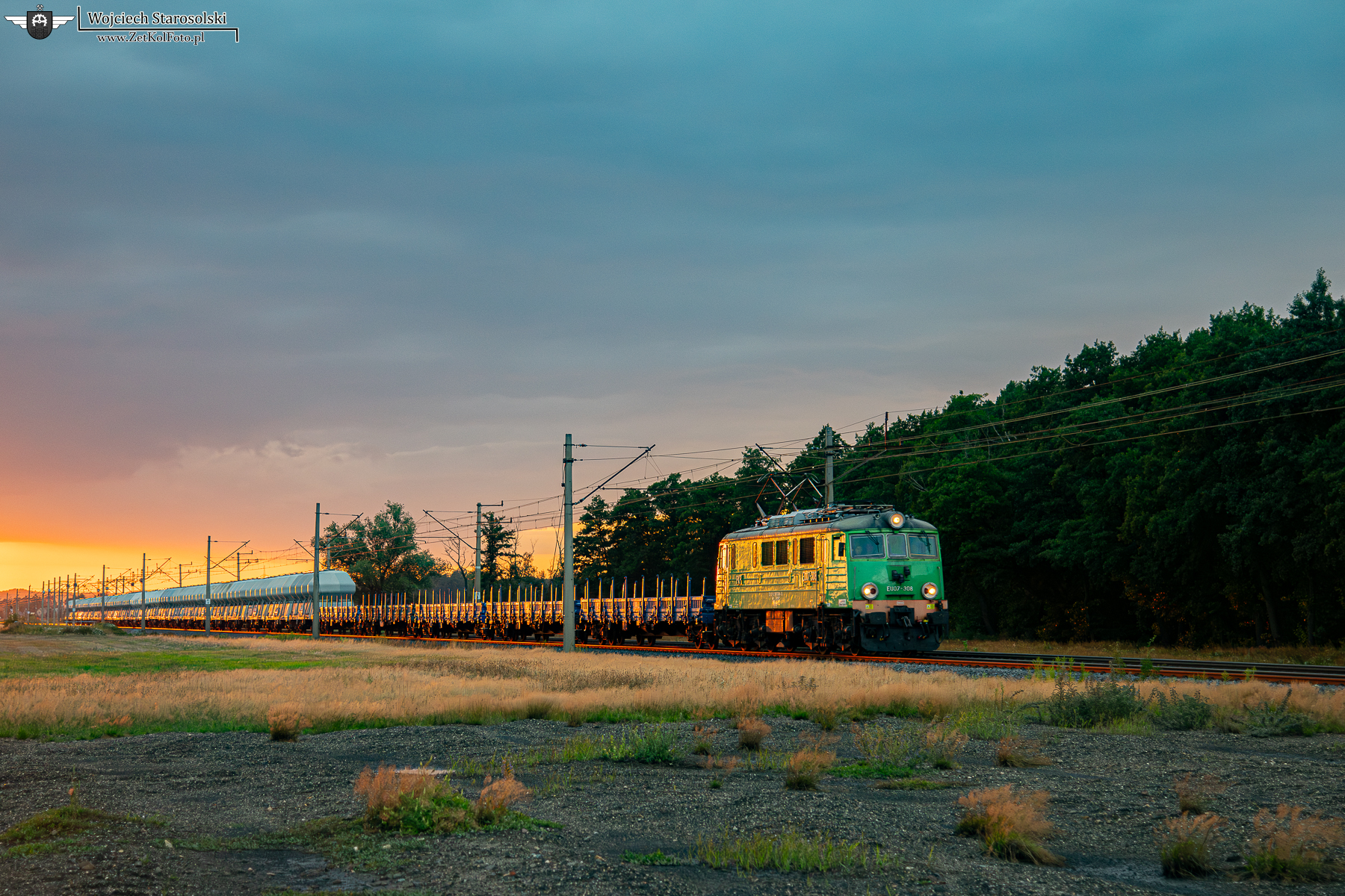 28.07.2025 | Krzydłowice | Szlak Rudna Gwizdanów-Grębocice | EU07-308 z platformami jedzie w kierunku Gwizdanowa.