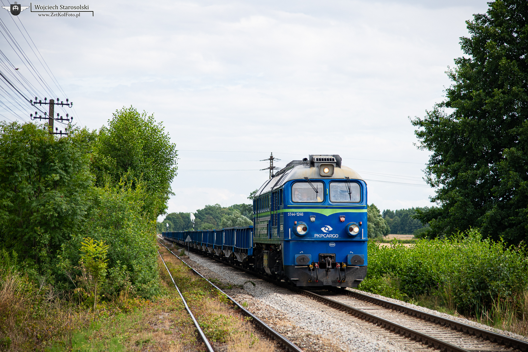 29.07.2025 | Goczałków | Szlak Rogoźnica-Jawor | ST44-1246 z węglarkami niskoburtowymi jedzie w/w szlakiem w kierunku Jawora.