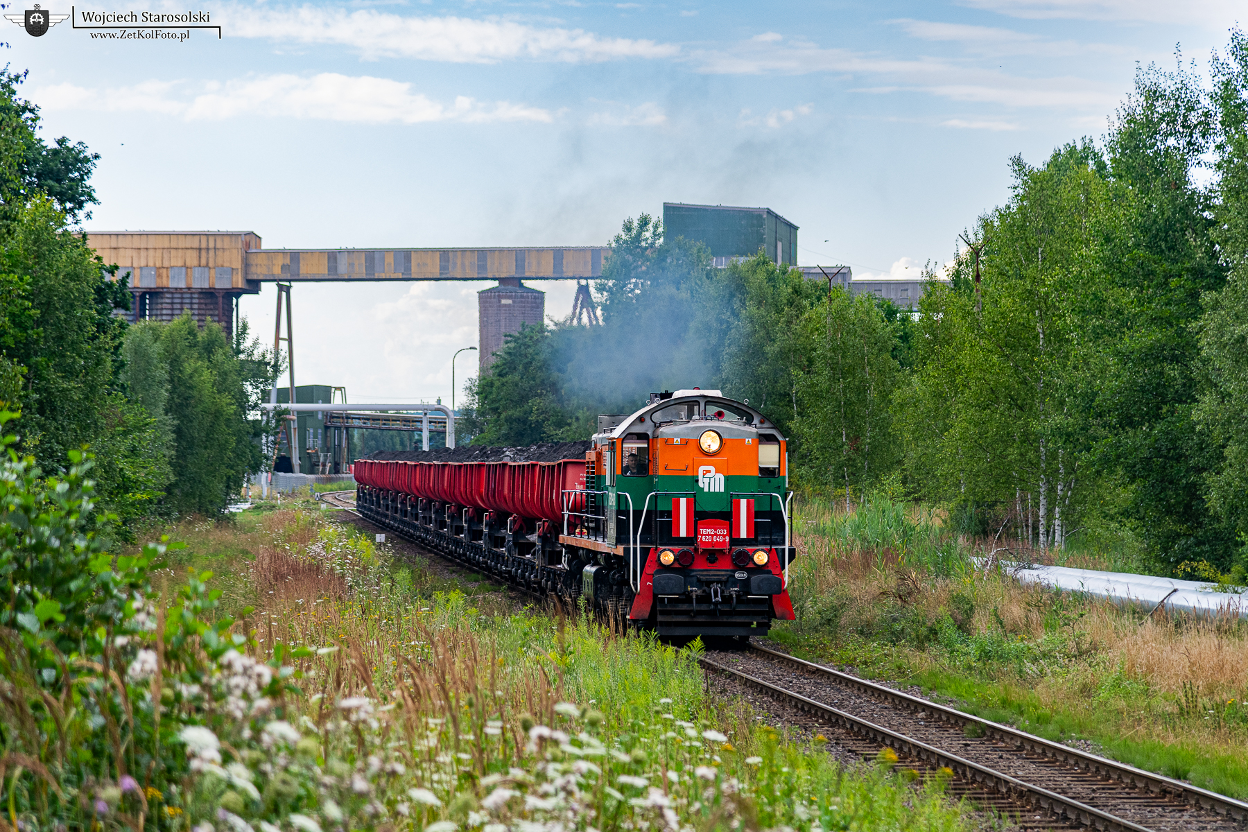 30.07.2025 | Sieroszowice | Szlak Rudna Zachodnia-ZG Polkowice-Sieroszowice | TEM2-033 z ładownymi kolebami do ZWR Polkowice, jedzie w/w szlakiem w kierunku Rudny.