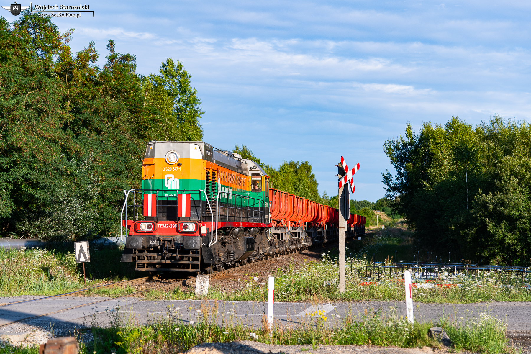 30.07.2025 | Sieroszowice | Szlak Rudna Zachodnia-ZG Polkowice-Sieroszowice | TEM2-299 z próżnymi kolebami z Zakładu Wzbogacania Rud w Polkowicach, zbliża się szybkim tempem do Sieroszowic, gdzie załaduje skład urobkiem. Następnie wróci on na rozładunek do ZWR Polkowice, tam surówka zostanie poddana wzbogacaniu metodą flotacji. To było naprawdę owocne 6 dni na Dolnym Śląsku, pozdrawiam serdecznie współtowarzyszy wyjazdu, jak i wszystkich napotkanych pracowników czy to na sieci KGHM, czy na magistralii podsudeckiej i okolicach!