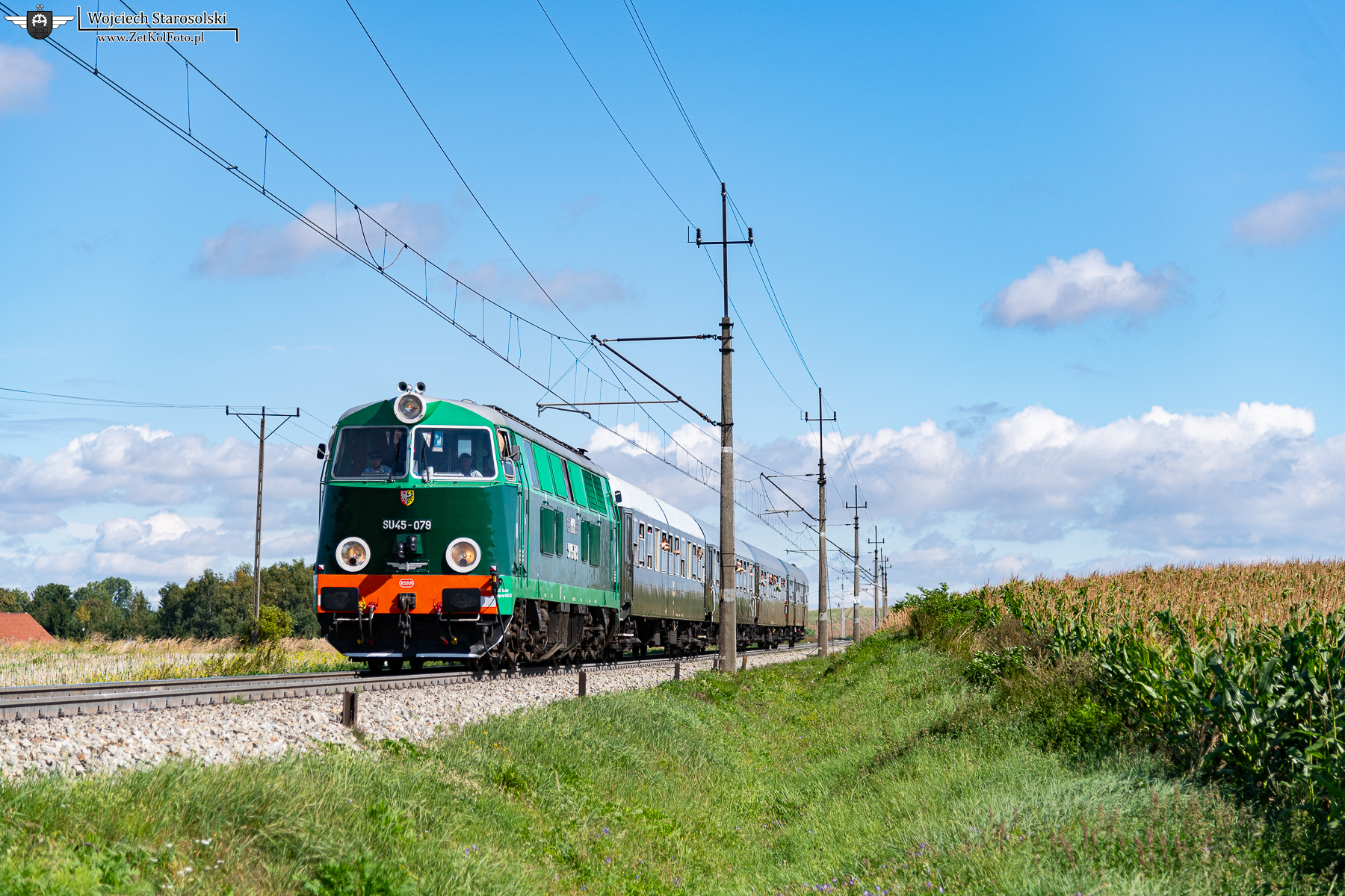 30.08.2025 | Szlak Kamieniec Ząbkowicki-Starczów | SU45-079 z pociągiem specjalnym pokonuje w/w szlak w kier. Starczowa.