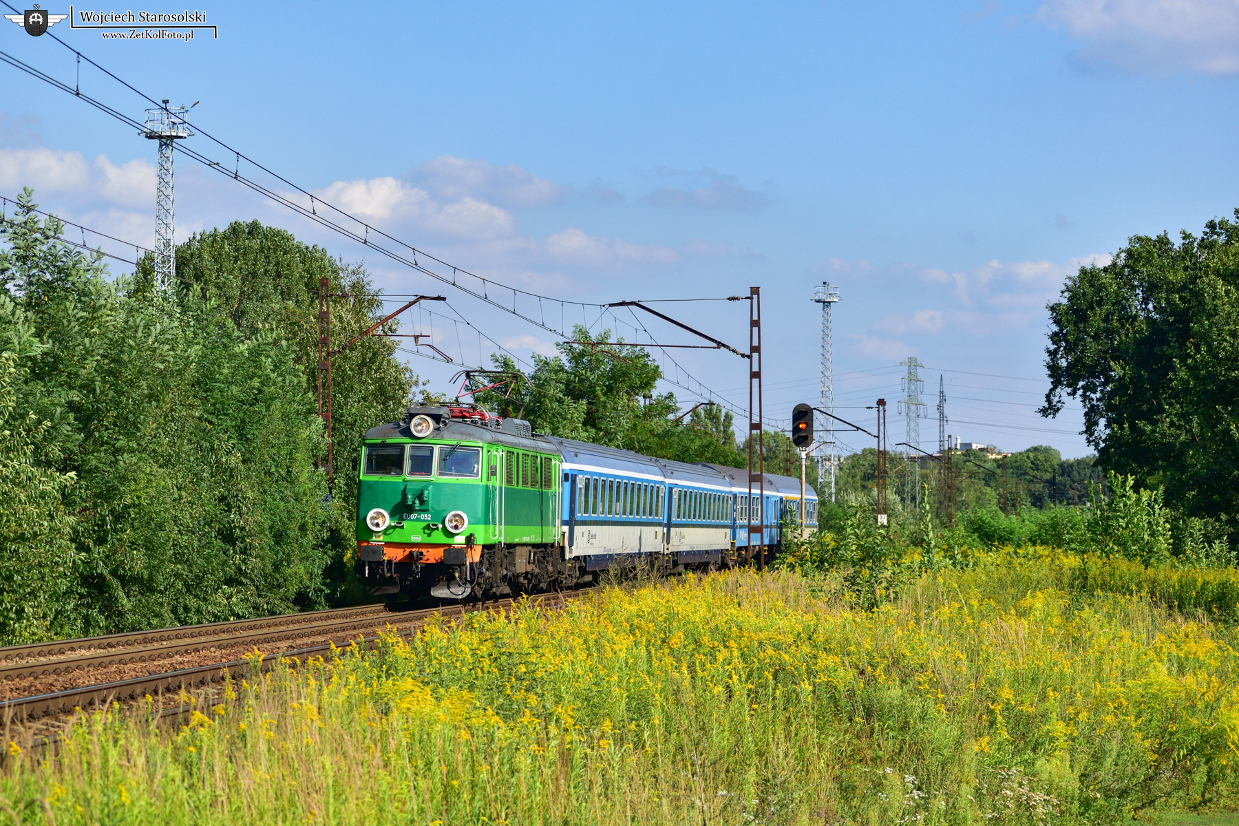 23.08.2023 | Gliwice | Szlak Gliwice Łabędy-Taciszów | EU07-052 z pociągiem IC Galicja relacji Przemyśl Główny-Bohumin pokonuje szlak Gliwice Łabędy-Taciszów, w kierunku Taciszowa.