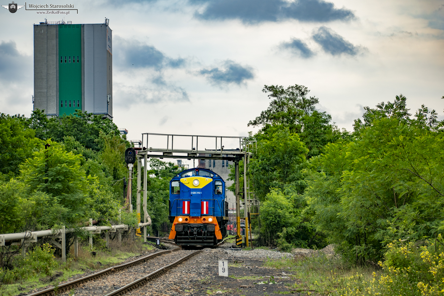6.07.2022 | Knurów | Stacja Szczygłowice Kopalnia, okręg SzKC | TEM2-123 luzem wyjeżdża w kierunku Krywałdu w celu ściągnięcia składu.
