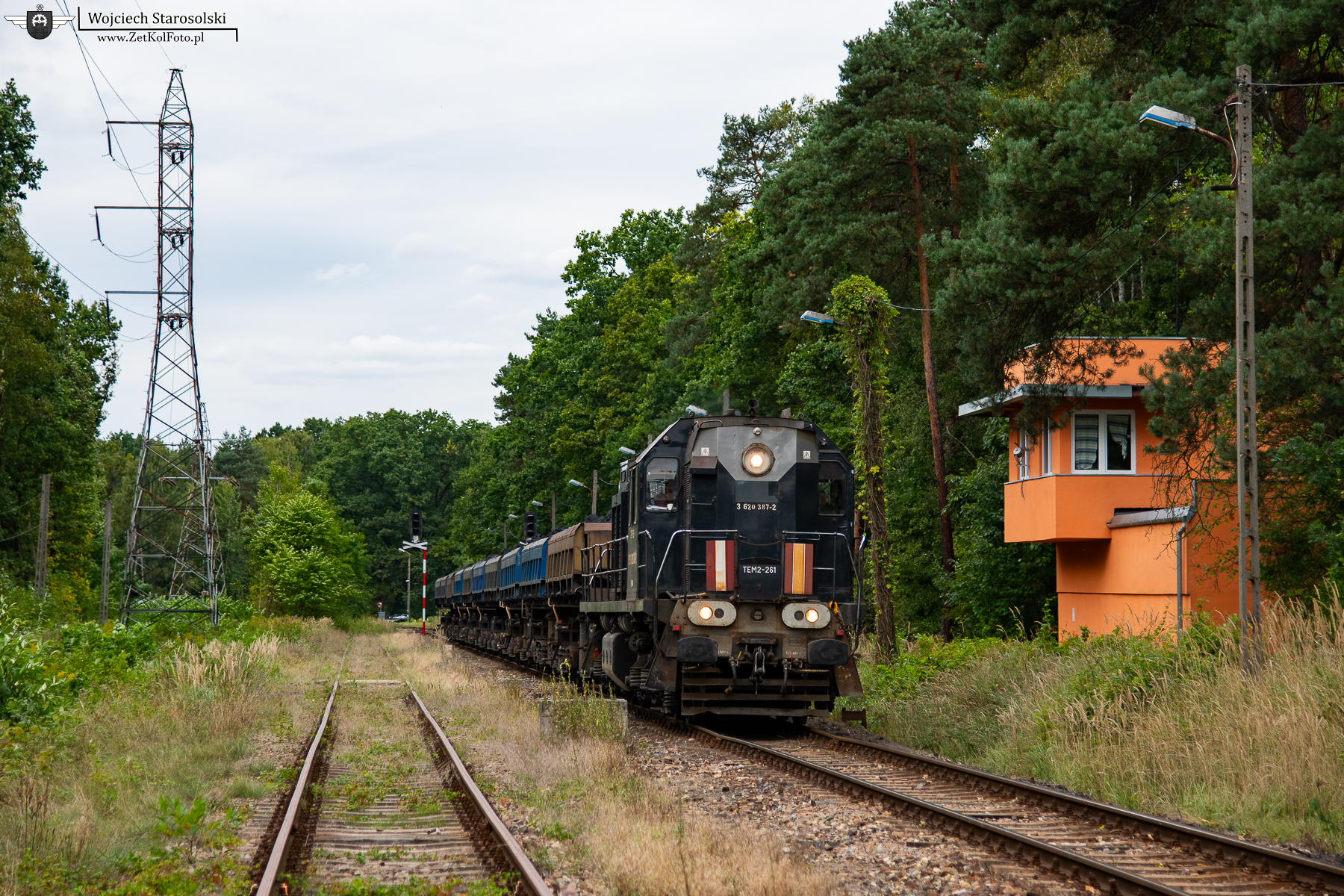 25.09.2025 | Mysłowice | Szlak Dąbrowa-Hołdunów | TEM2-261 z ładownymi radwanami rel.KWK Piast-Bór Górny jedzie w kierunku Dąbrowy, mijając zamkniętą stację Kosztowy.
