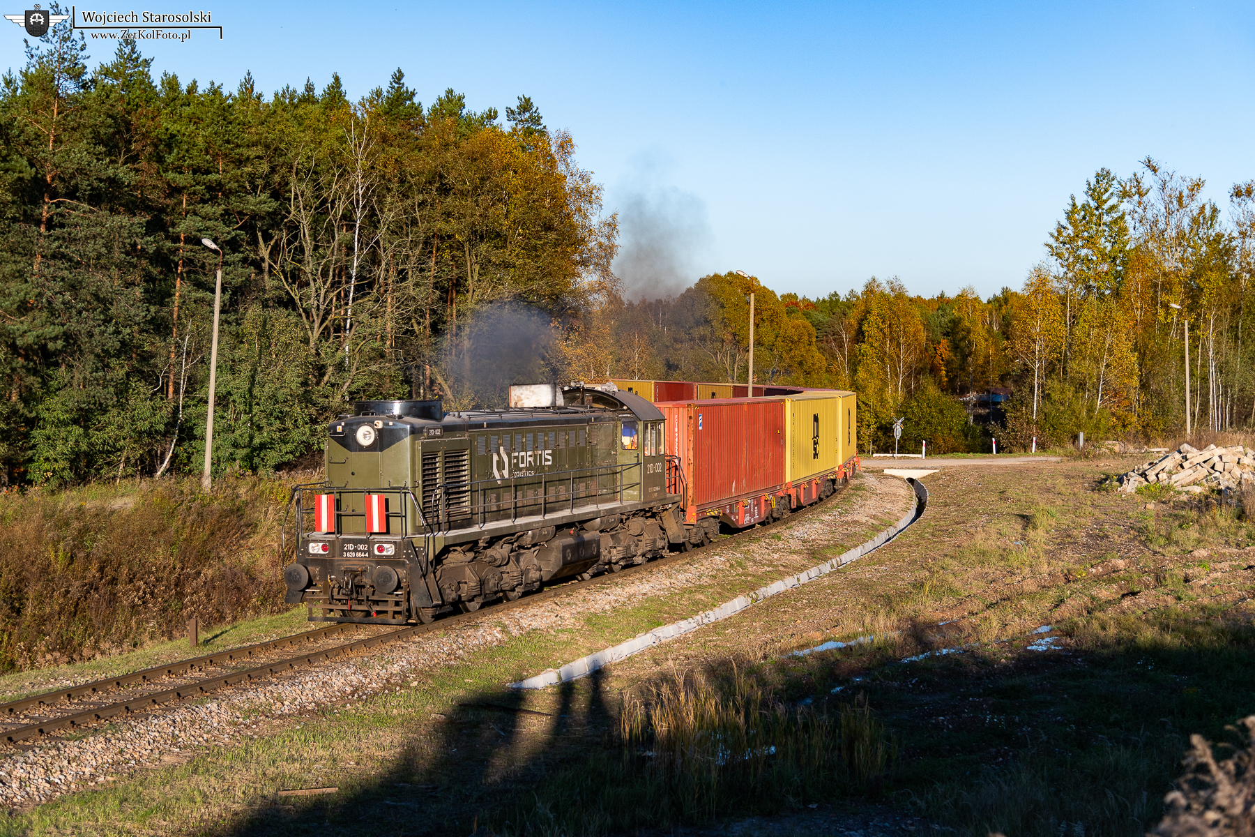 20.10.2025 | Sławków | Bocznica Sławków-Sławków Południowy LHS | 21D-002 prowadzi kontenery w kierunku stacji Sławków Południowy LHS.