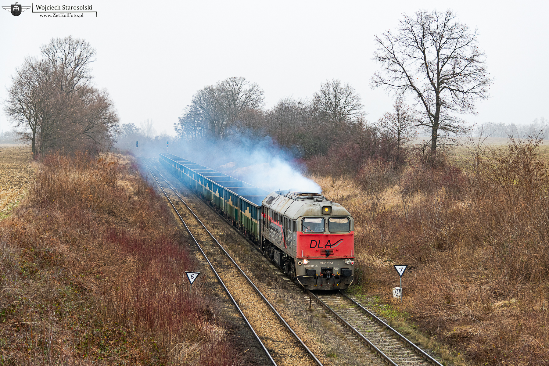 21.12.2025 | Kamieniec Ząbkowicki | Szlak b.sz. Doboszowice-Kamieniec Ząbkowicki | M62-1154 z węglarkami jedzie do kopalni gnejsu Pomianów-Doboszowice.