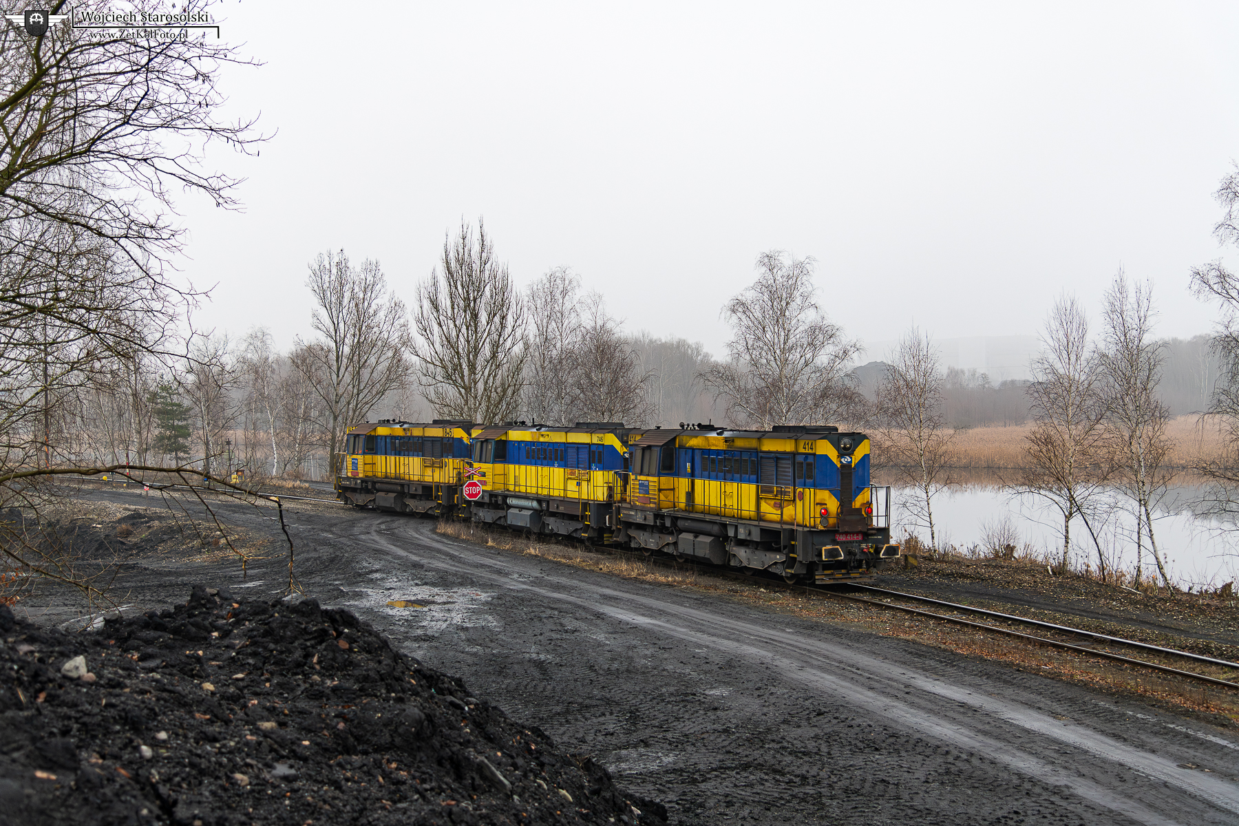 22.12.2025 | Karvina | Stacja Karvina Doly | 740 414-8 z dwoma innymi koziołkami, wjechał do w/w stacji od strony stacji Horni Sucha.