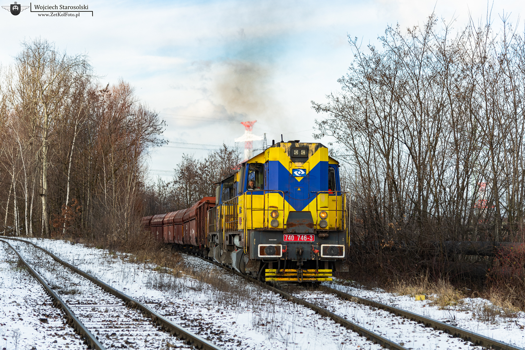 30.12.2025 | Stonava | Důl ČSM Sever | 740 746-3 z drugim kozłem, węglarką i talbotami, wjeżdżają na Sever od strony Karviny