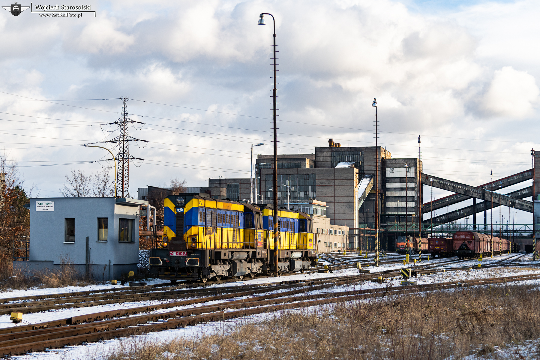 30.12.2025 | Stonava | Důl ČSM Sever | 740 414-8 w duecie z drugim koziołkiem, wyjeżdżają z Severa w kierunku Karviny.