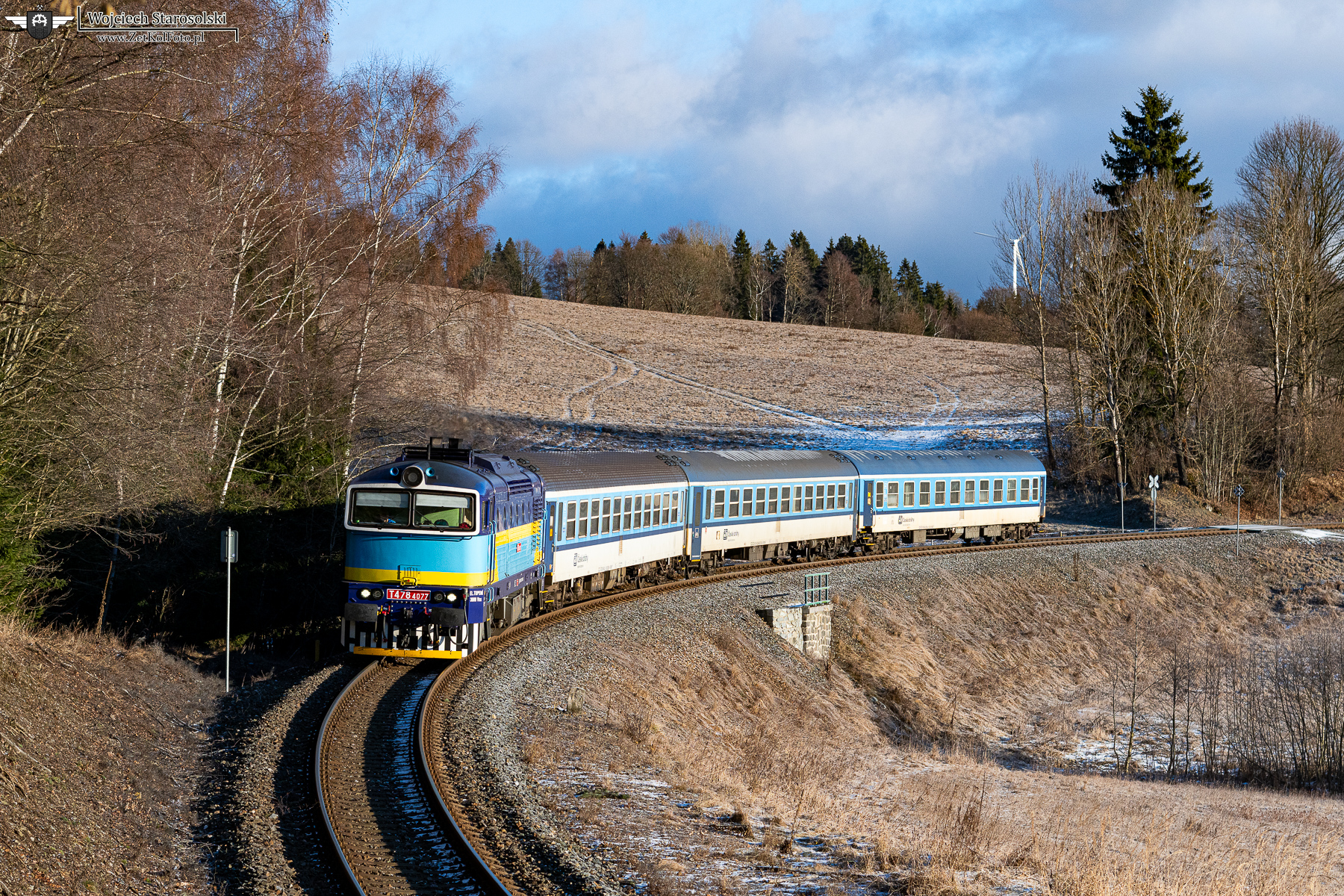29.12.2025 | Ostruzna | Szlak Branna-Ostruzna | T478.4077 z pociągiem relacji Jesenik-Zabreh na Morave pokonuje w/w szlak w kierunku Branny.
