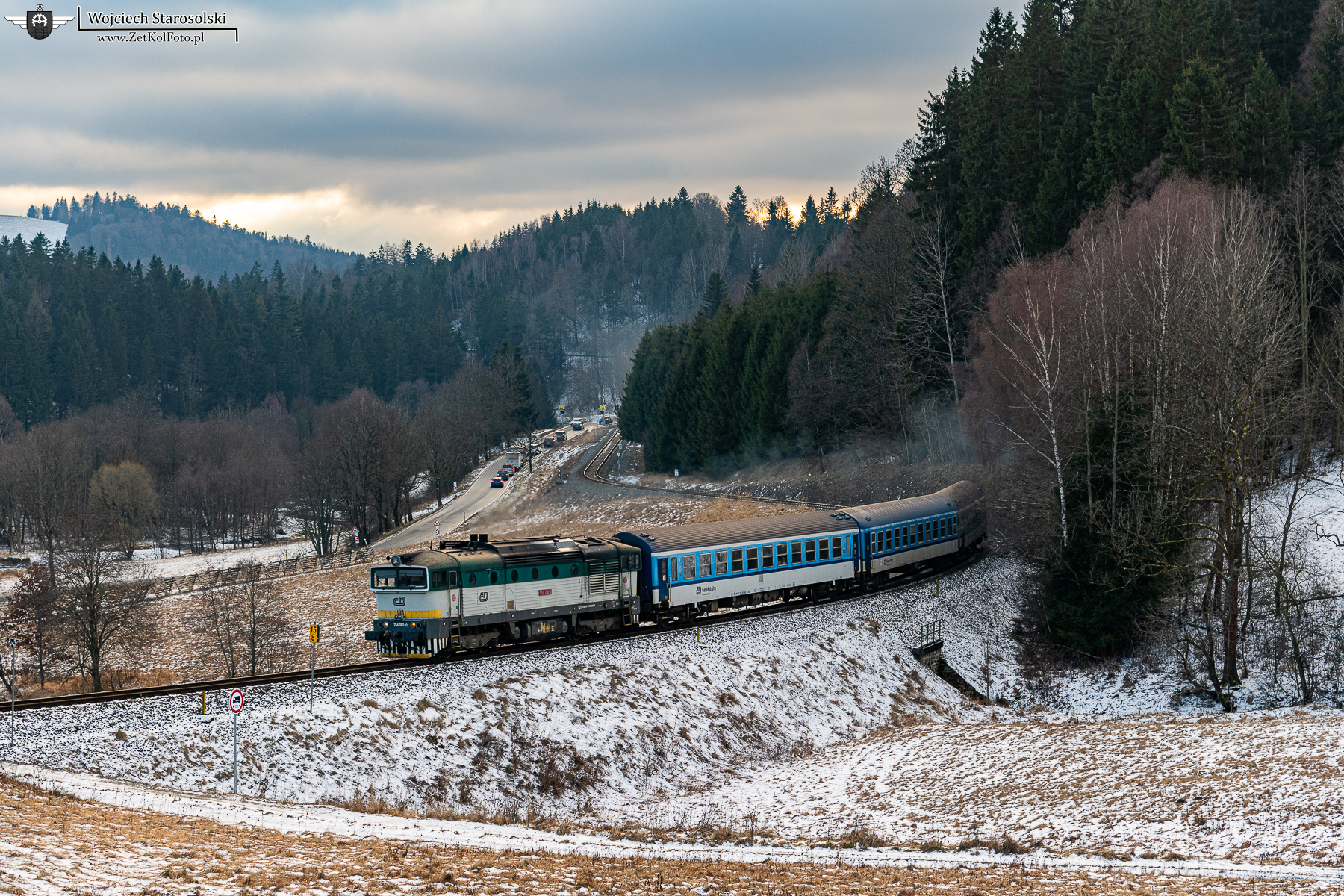 29.12.2025 | Ostružná | Szlak Branná - Ostružná | 754 080-0 z pociągiem przyspieszonym rel. Zábřeh na Moravě - Jeseník, pokonuje w/w szlak, jadąc w kierunku stacji Ostružná.