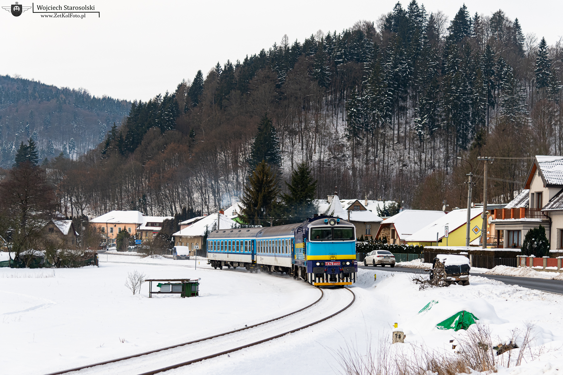 05.01.2026 | Hanusovice | Szlak Hanusovice-Jindrichov na Morave | T478.4077 z pociągiem relacji Bludov-Jesenik, jedzie w kierunku Jindrichova.