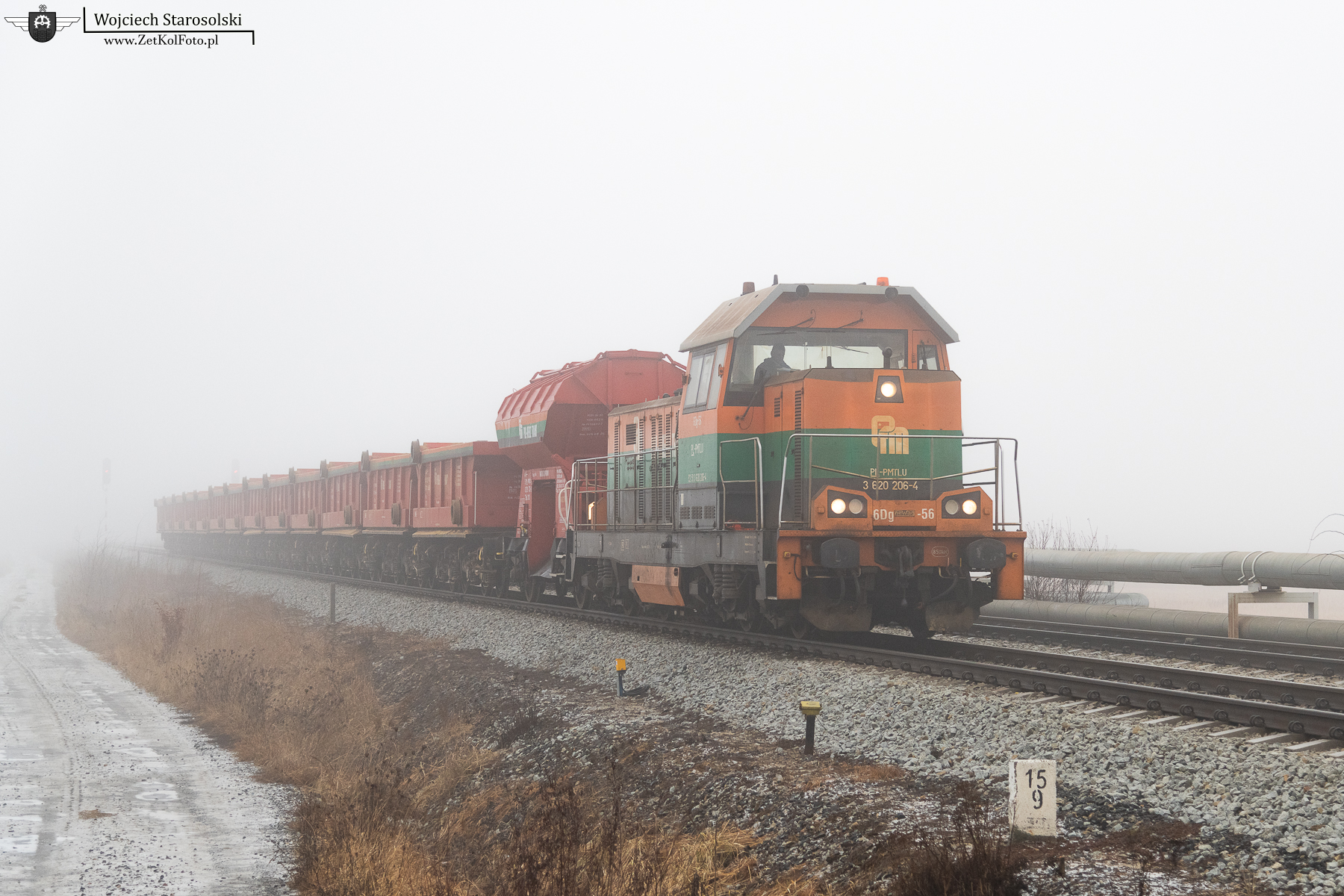 07.02.2026 | Polkowice | Szlak Polkowice Główne-Polkowice Zachodnie | 6Dg-56 z próżnymi rolkowcami jedzie w kierunku Polkowic Głównych, od strony Polek zach.