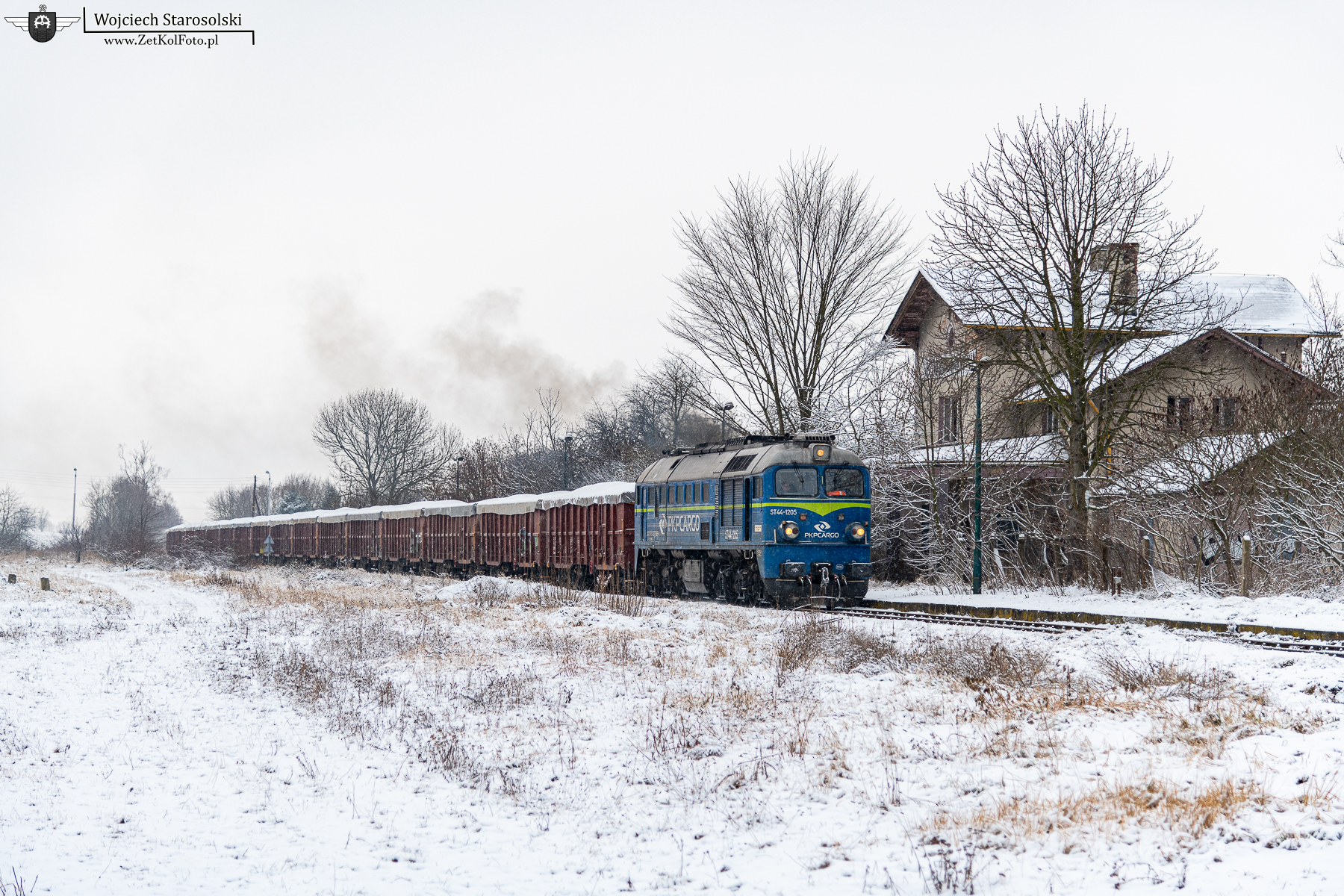 15.02.2026 | Tłustomosty | Szlak Pietrowice Wielkie-Baborów, dawna st. Tłustomosty | ST44-1205 z ładownymi węglarkami jedzie na Pietrowice.