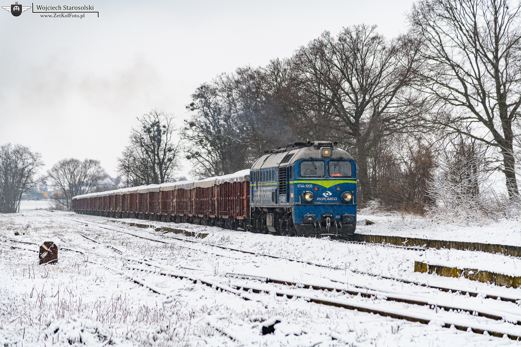 15.02.2026 | Lekartów | Szlak Racibórz-Pietrowice Wielkie, dawna st. Lekartów | ST44-1205 z ładownymi węglarkami jedzie na Racibórz.