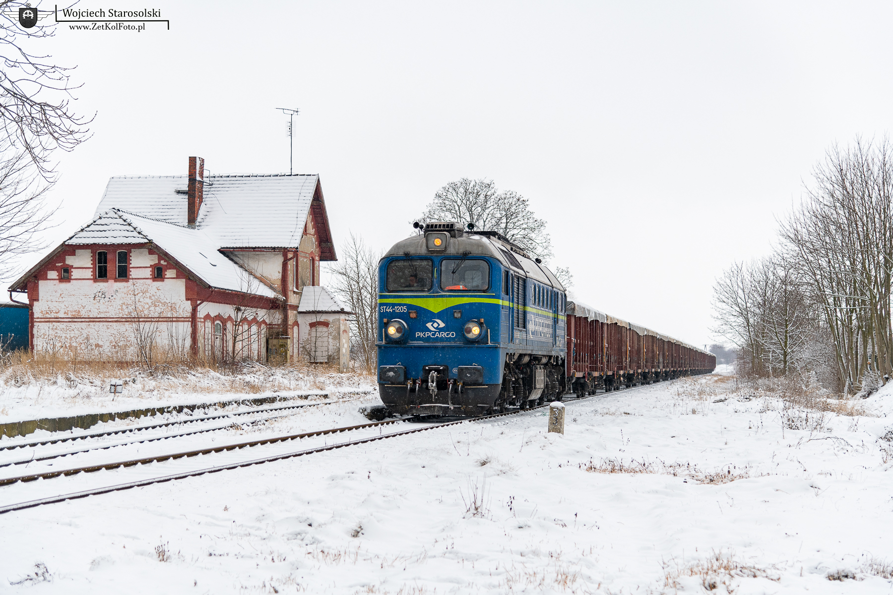 15.02.2026 | Racibórz | Szlak Racibórz-Pietrowice Wielkie, dawna st. Racibórz Studzienna | ST44-1205 z ładownymi węglarkami jedzie na Racibórz.