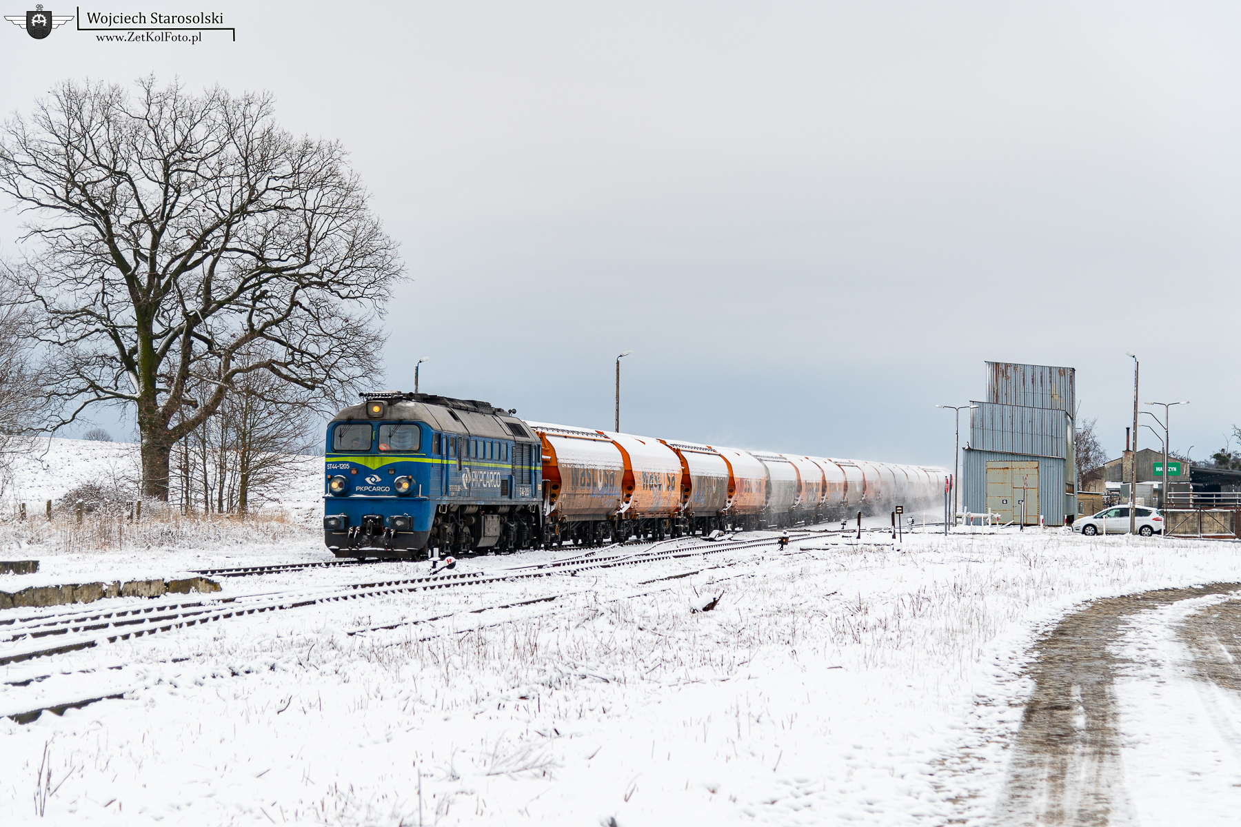 15.02.2026 | Lekartów | Szlak Racibórz-Pietrowice Wielkie, dawna st. Wojnowice | ST44-1205 z próżnymi zbożówkami jedzie na Pietrowice.